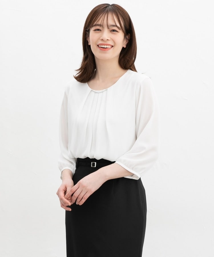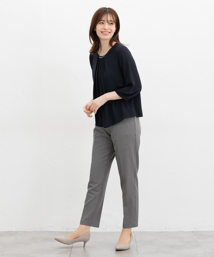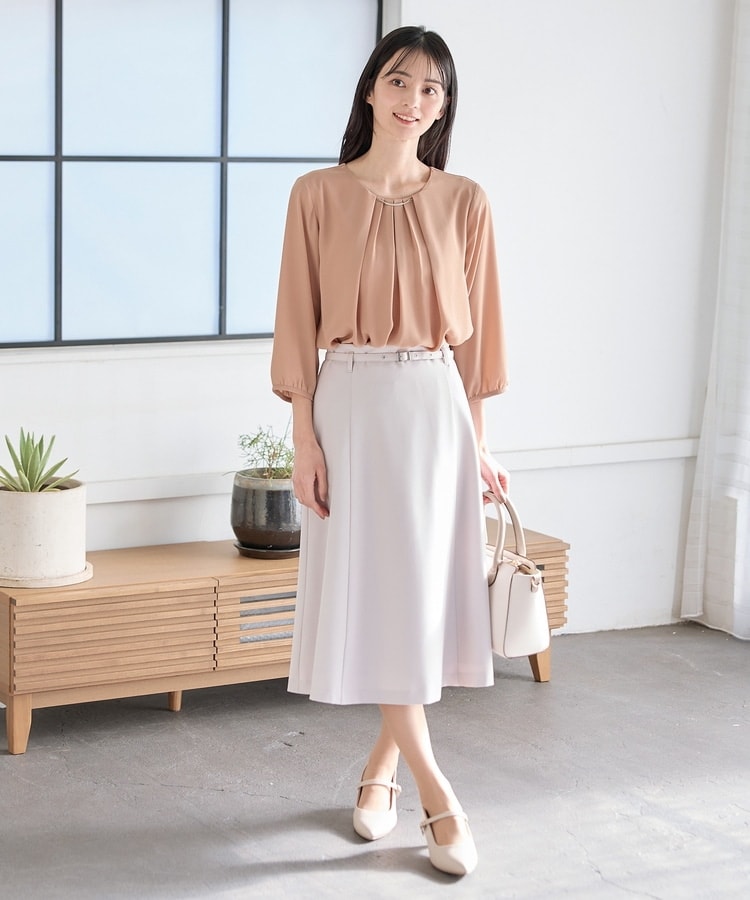 フロントにタックを入れた、ボディーラインを拾わないふんわりシルエット。
