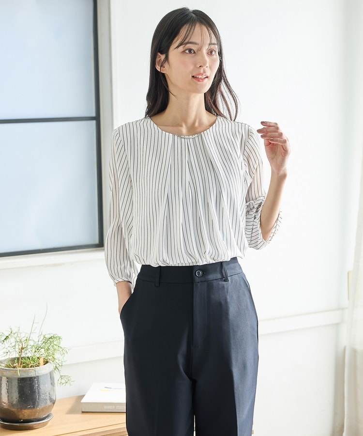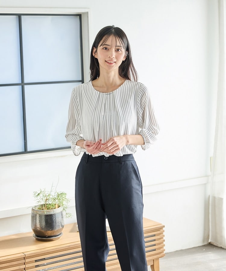 ジャケットにも合うサイズ感で、フレアスカートやテーパードパンツ合わせのきれいめオフィススタイルはもちろん、デニム合わせのカジュアルスタイルにも、幅広く活躍。