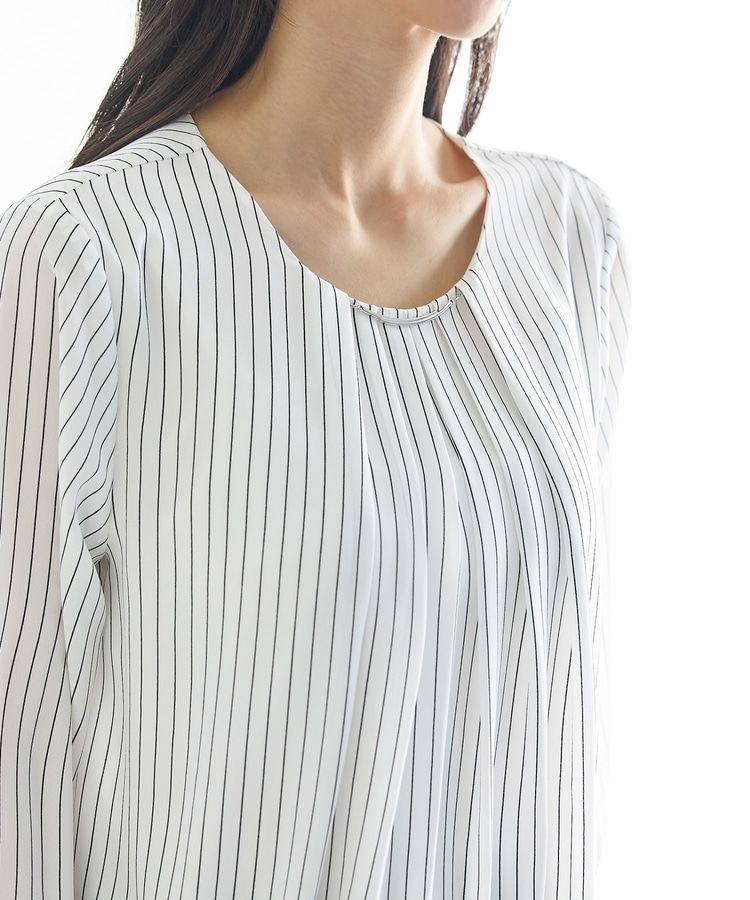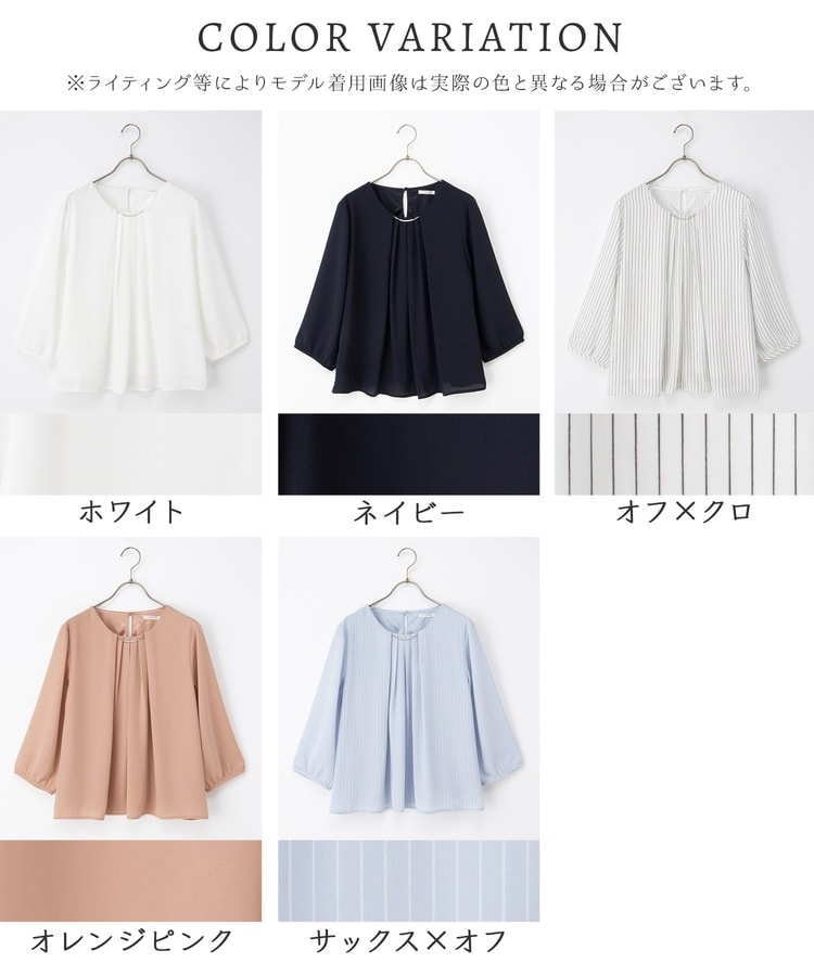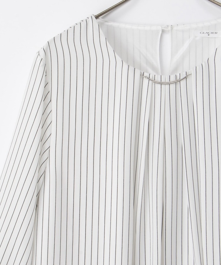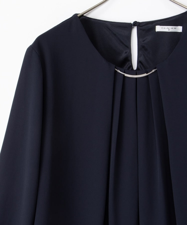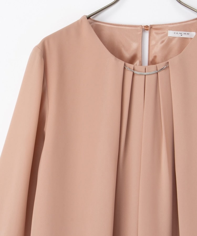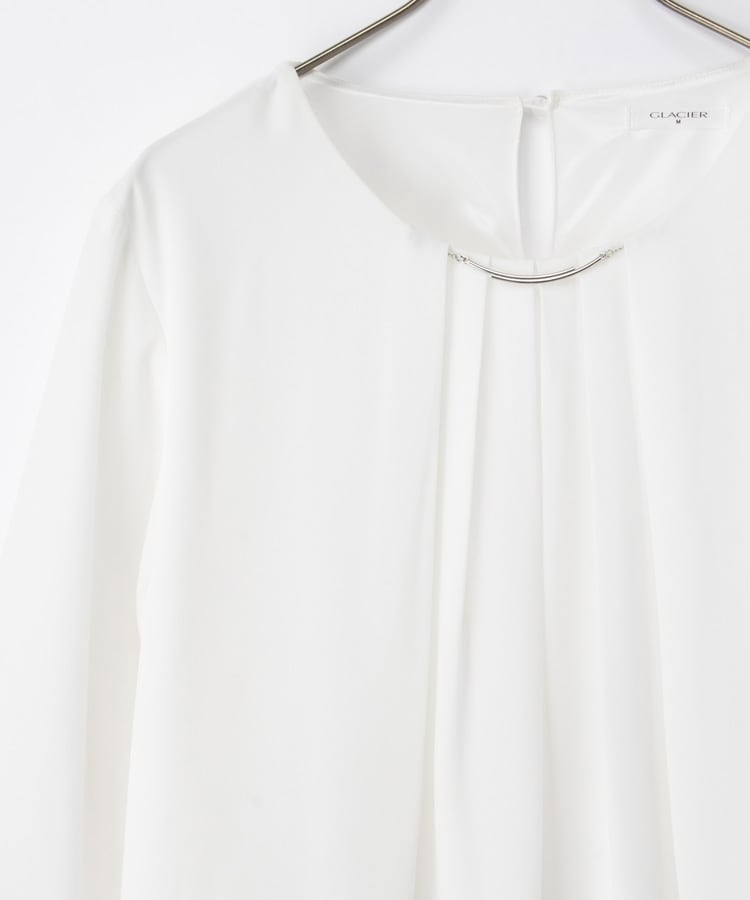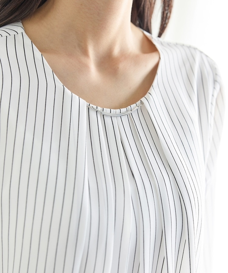 衿元にさりげない華やかさをプラスするメタルパーツのアクセサリーは、シーンやコーデに合わせて取り外し可能。