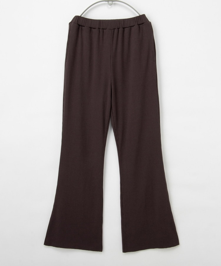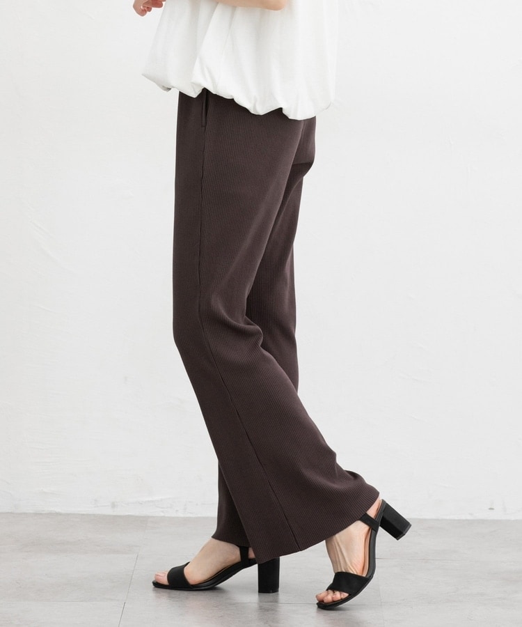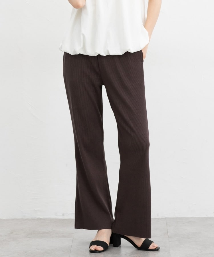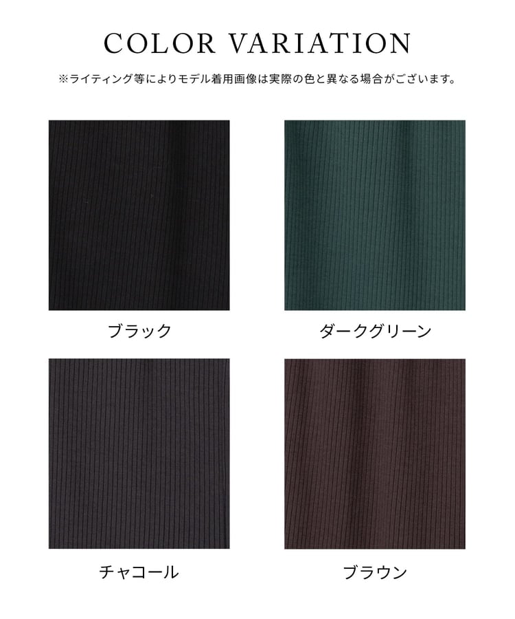 縦の編み目とほんのり広がるフレアシルエットがスッキリ美脚にみせてくれるシンプルデザイン。