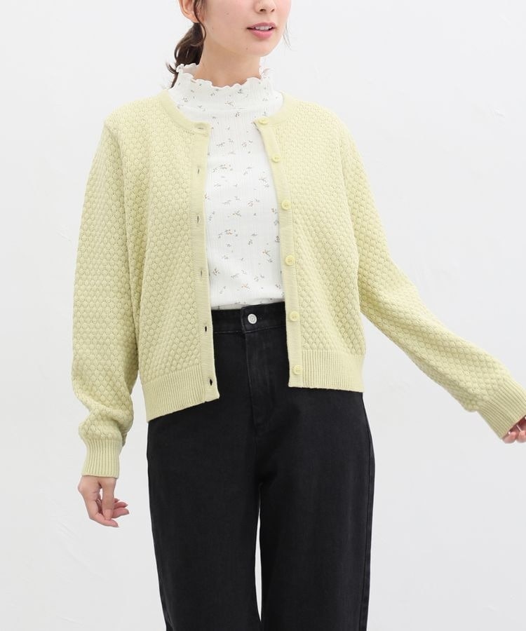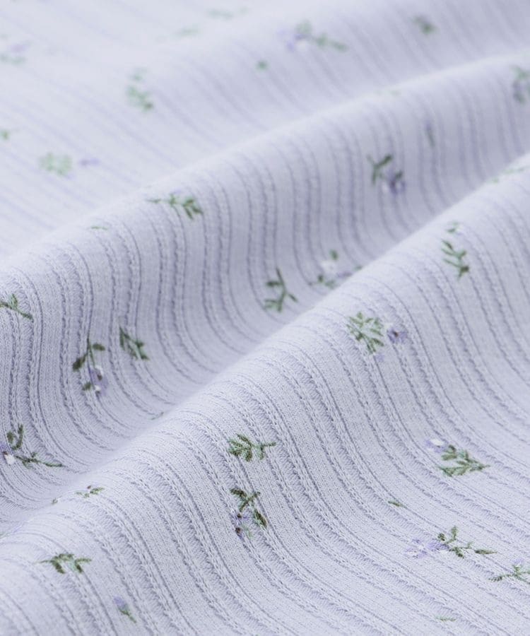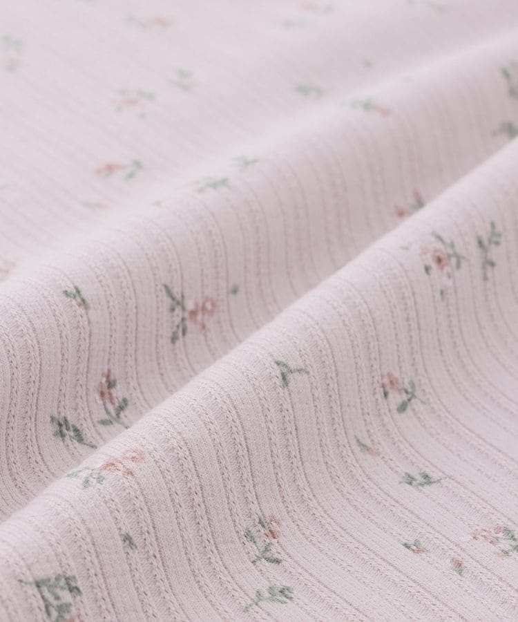 パターンメッシュのおしゃれな編地にフェミニンな小花の総柄デザイン。