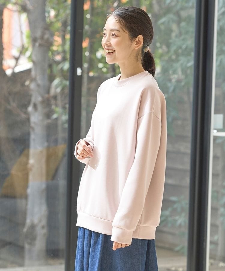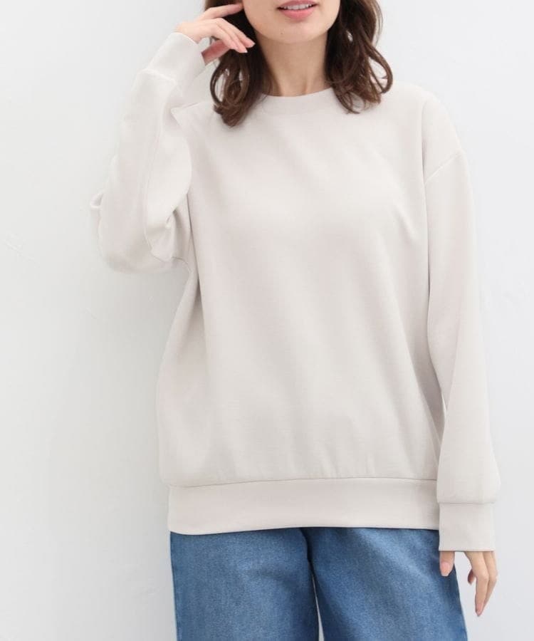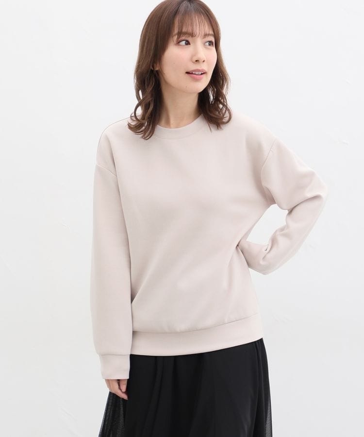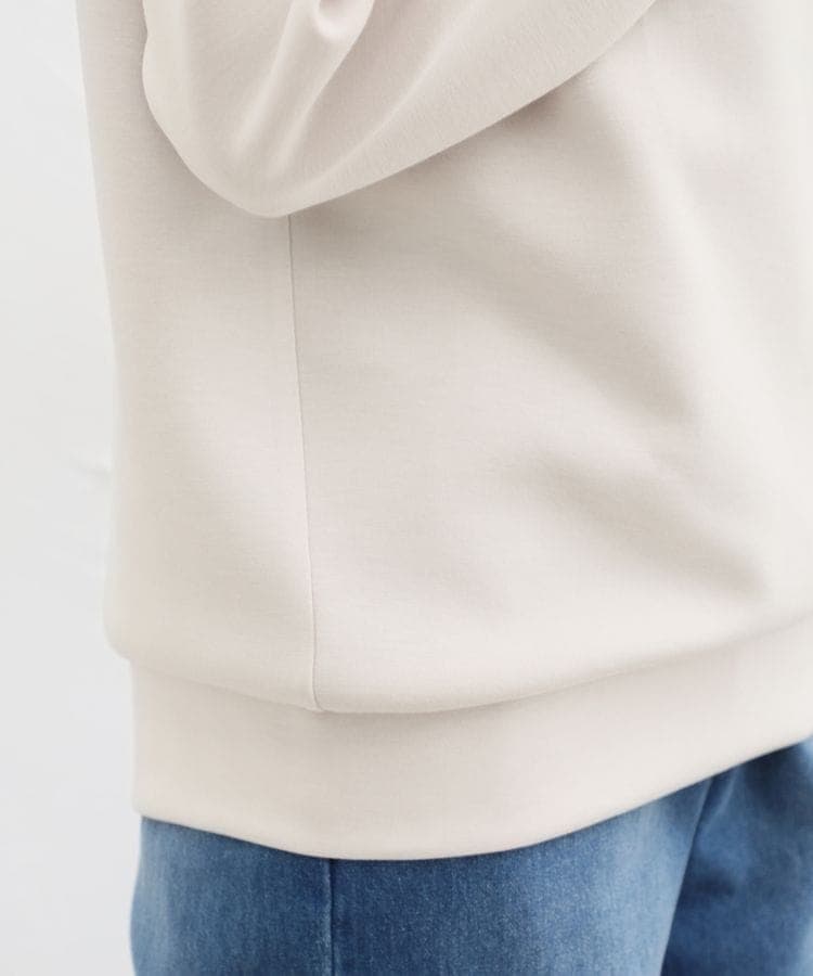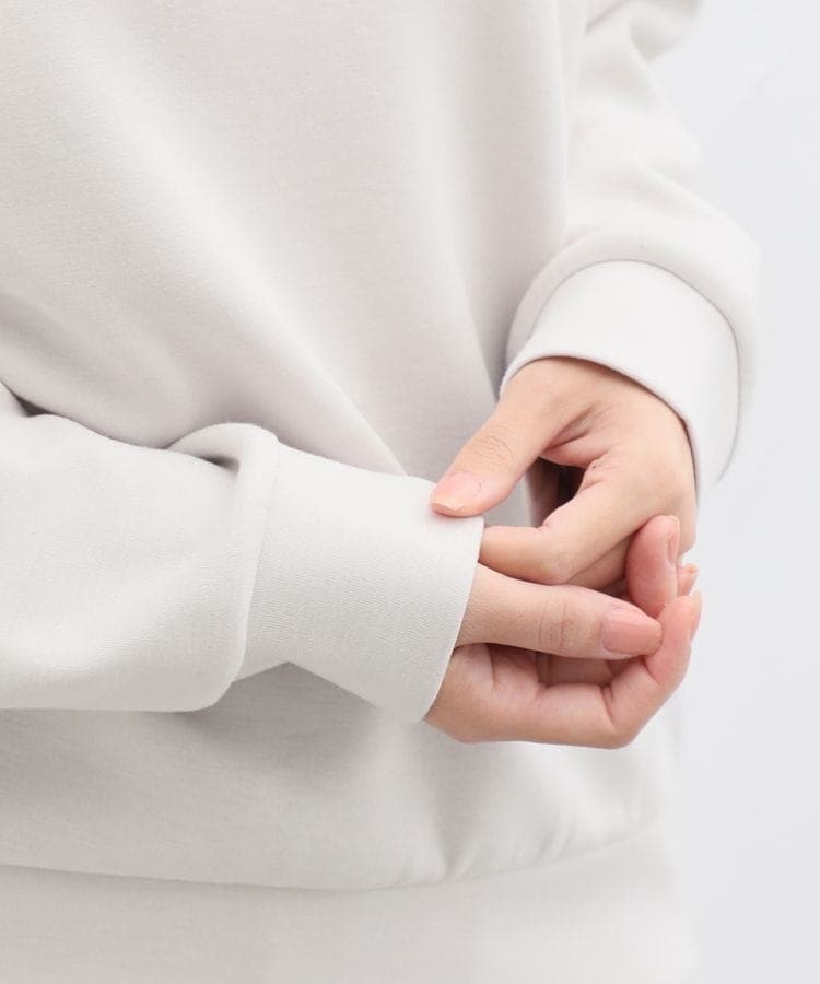 ストレッチの利いた、両面が滑らかなレーヨン混のきれいめスウェット素材。