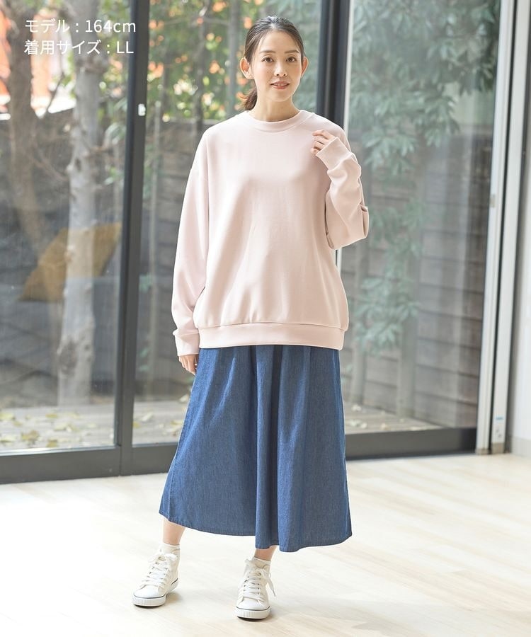 ドロップショルダーでゆとりがありながら、大きすぎない絶妙なサイズ感。