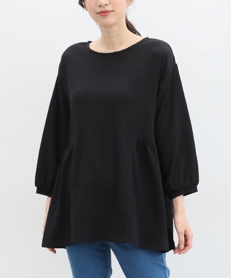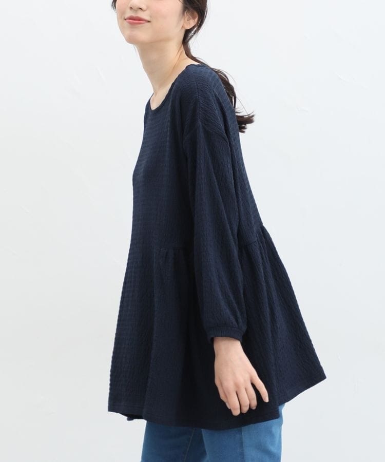 ゆったりめの幅とヒップがすっぽり隠れる丈感で体型もカバー。