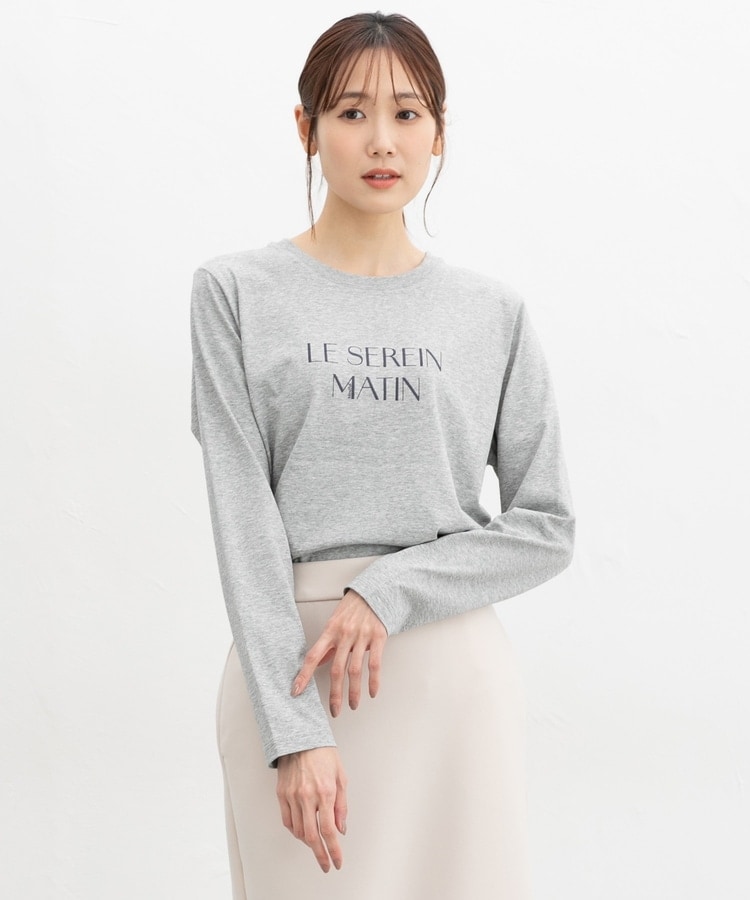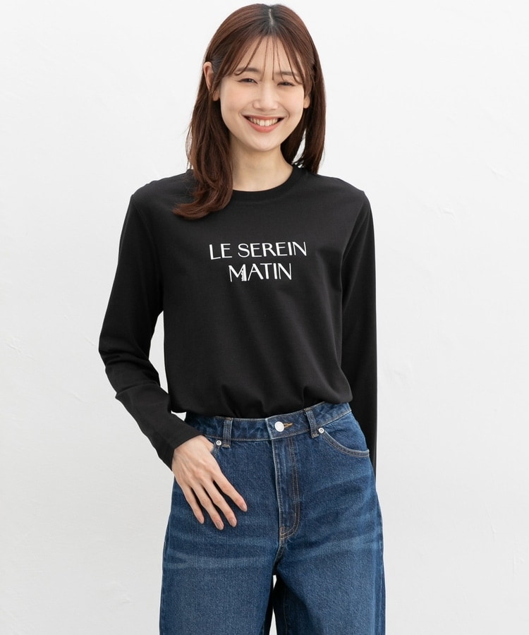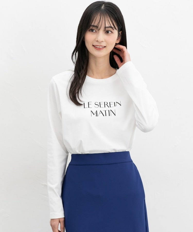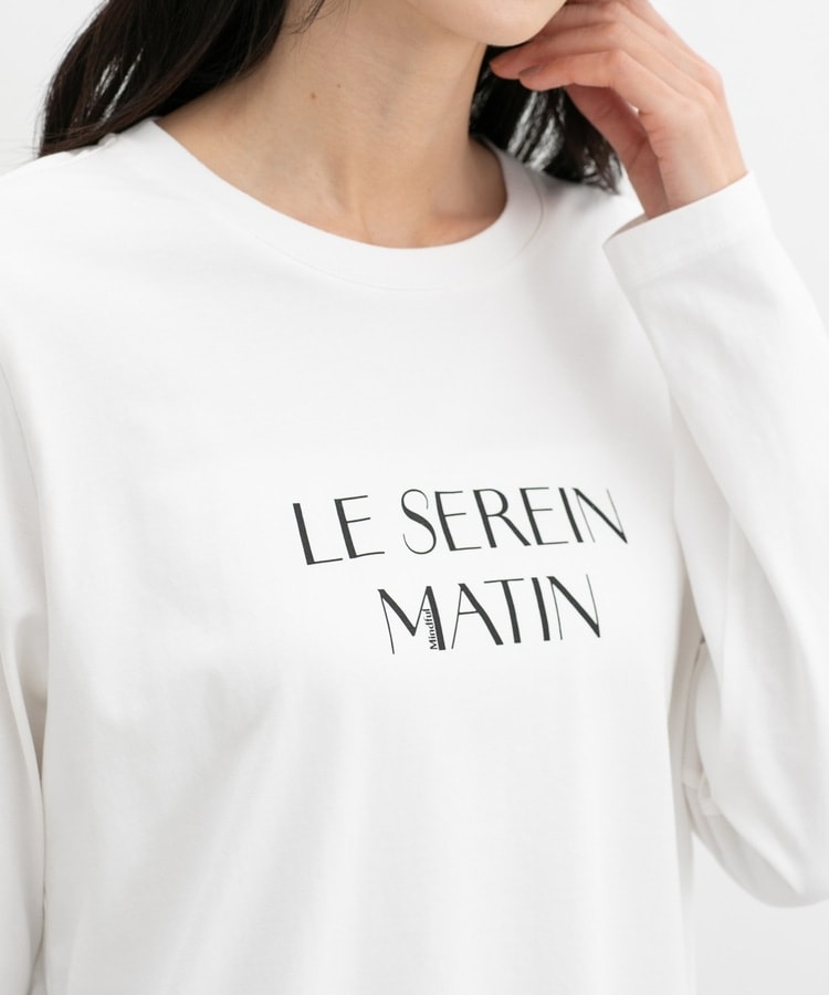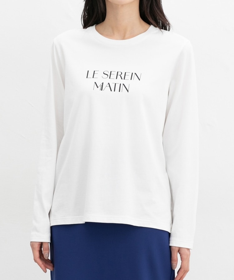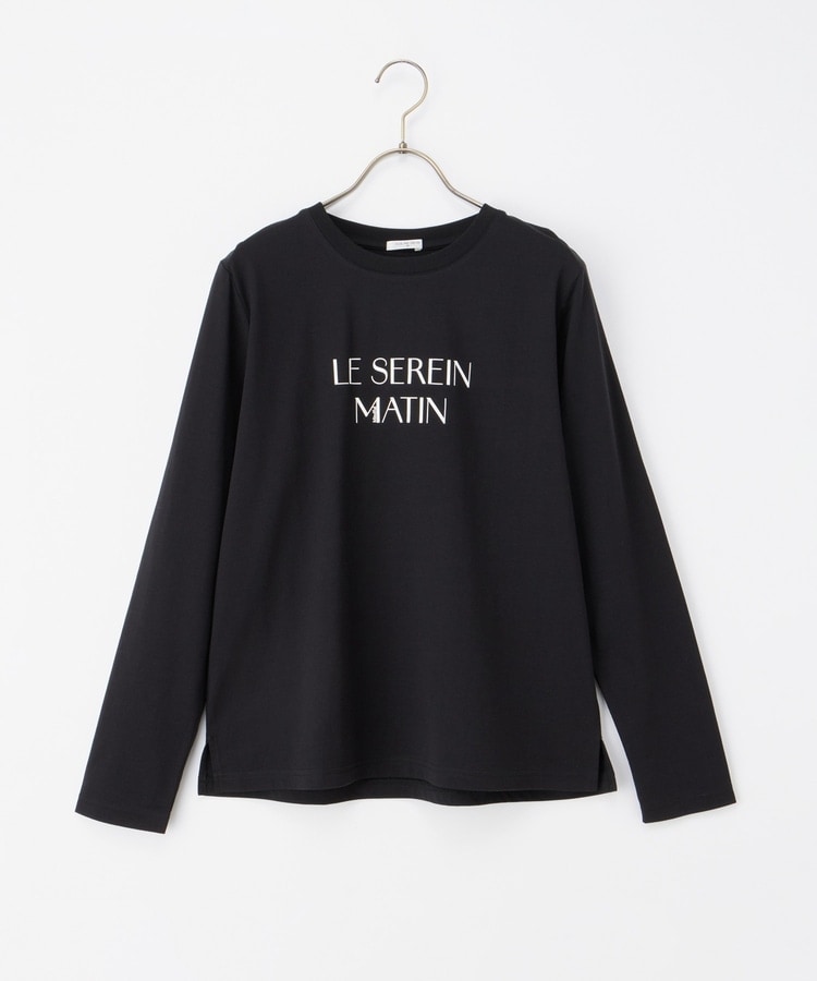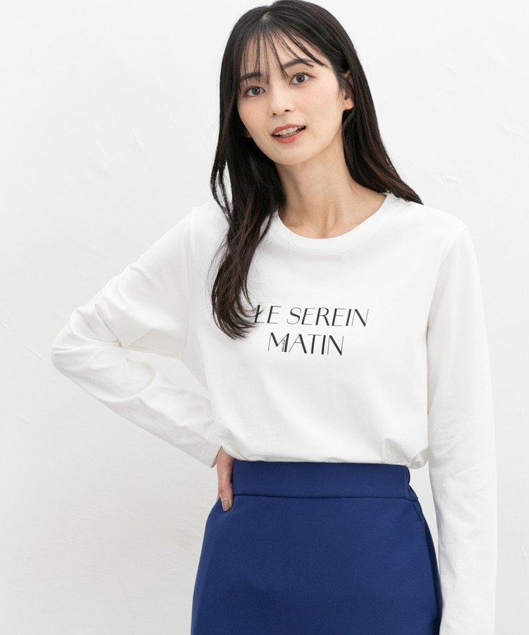 丸みのある、フェミニンなネックラインのシンプルデザインに、おしゃれフォントのロゴがアクセント。