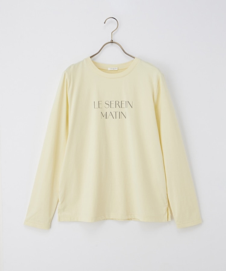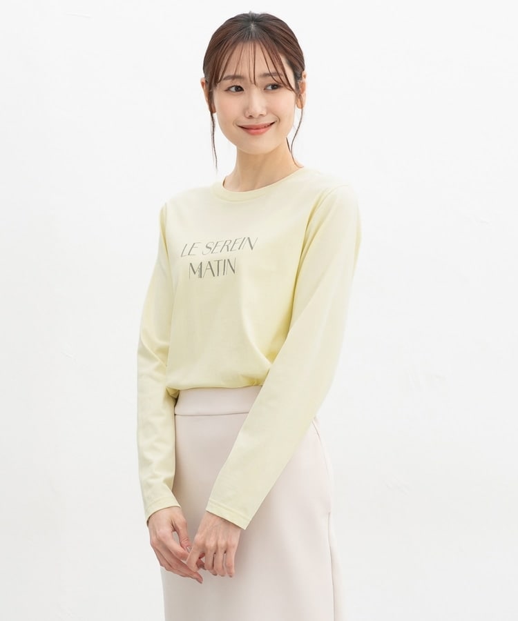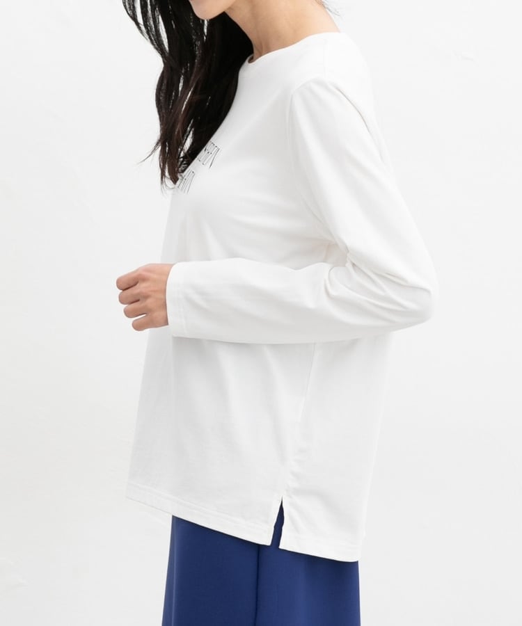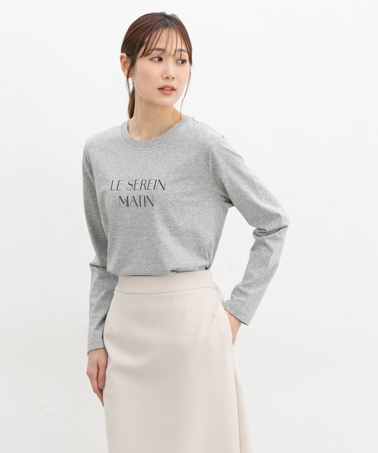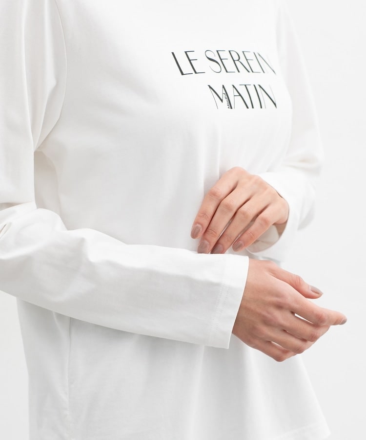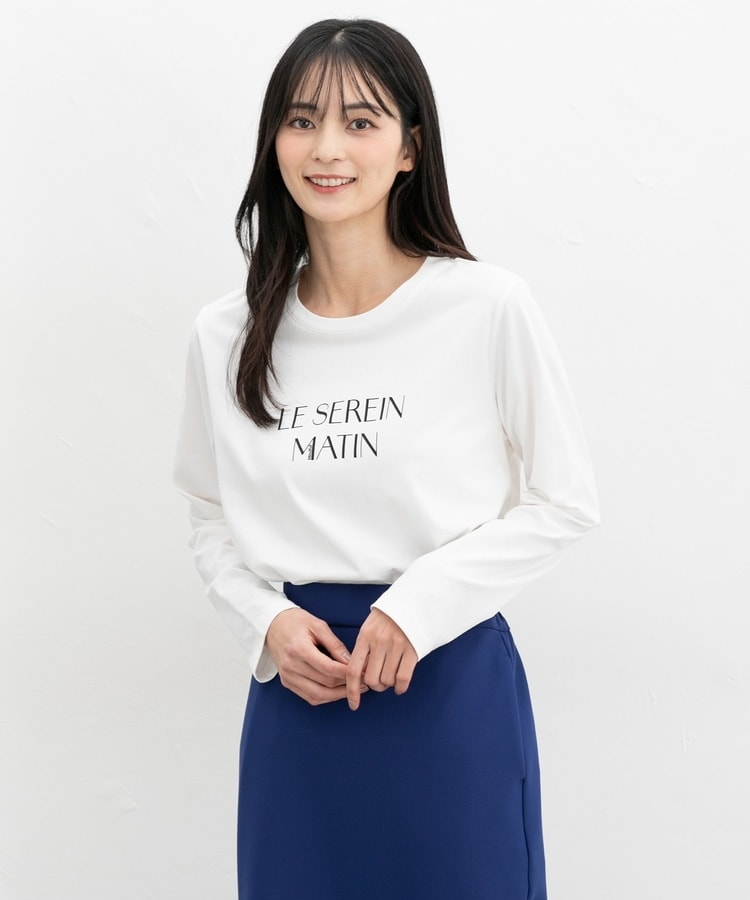 丸みのある、フェミニンなネックラインのシンプルデザインに、おしゃれフォントのロゴがアクセント。