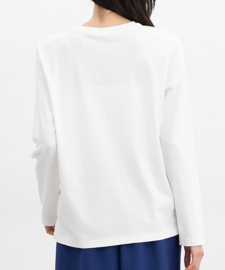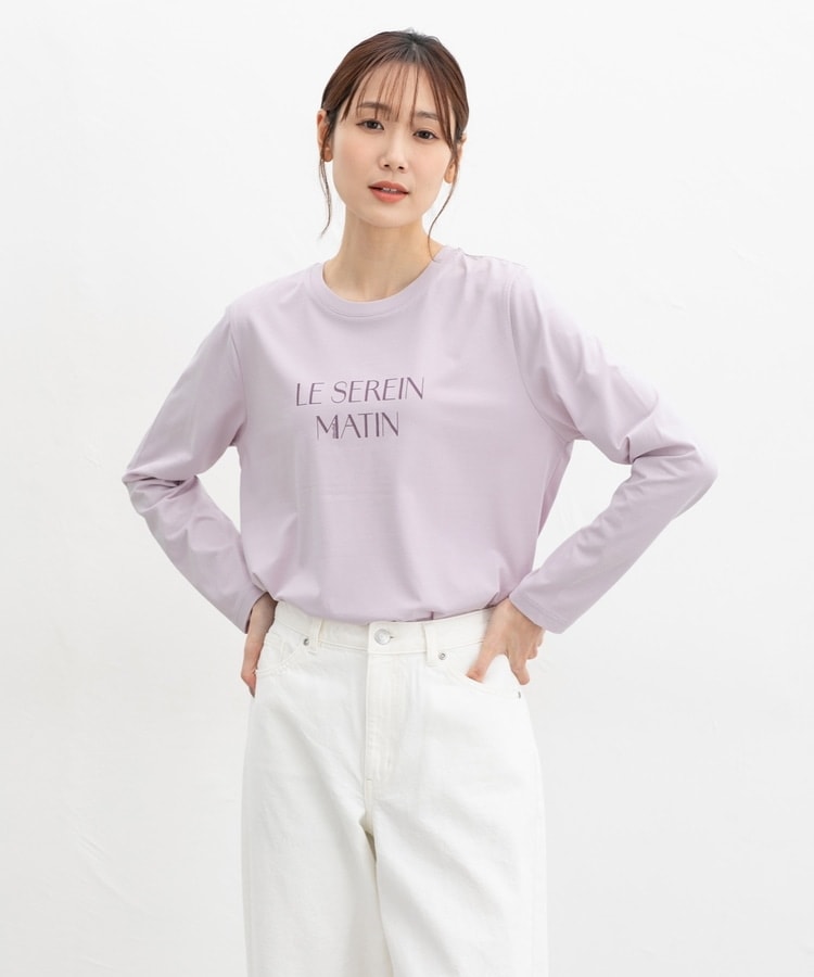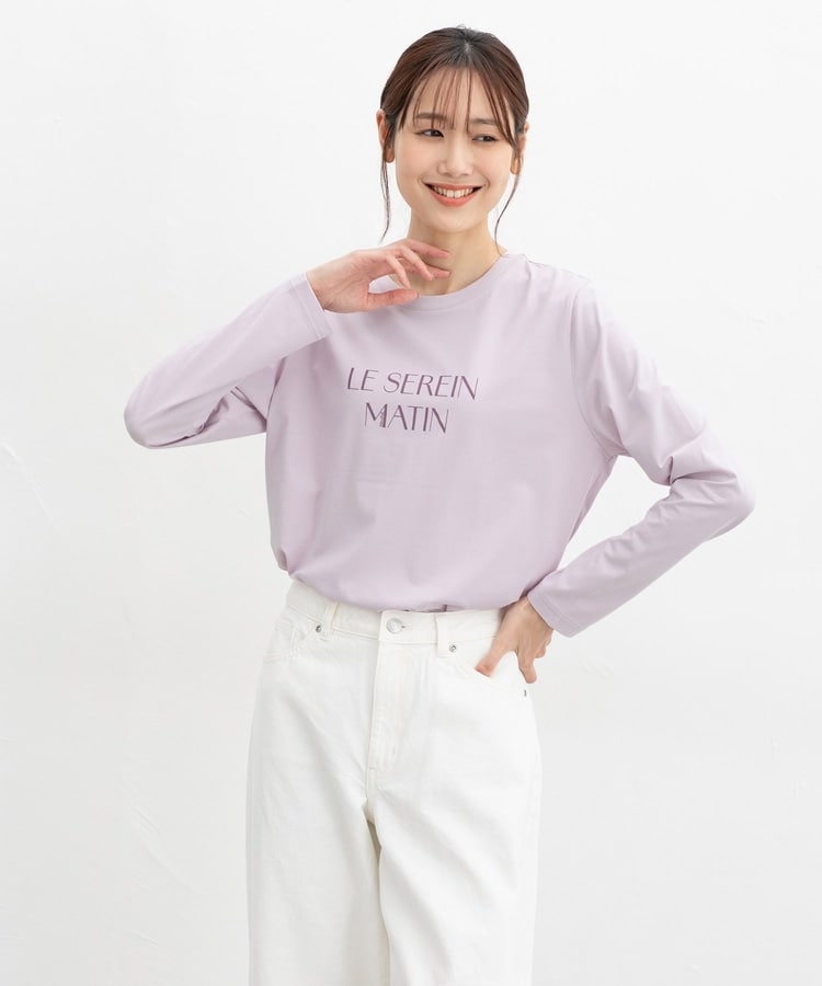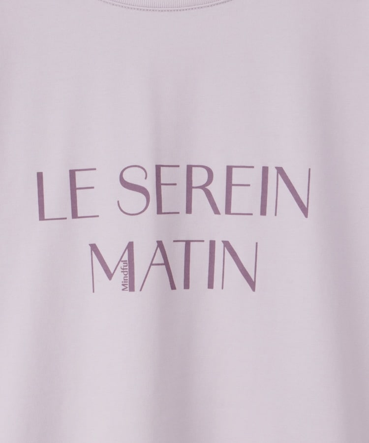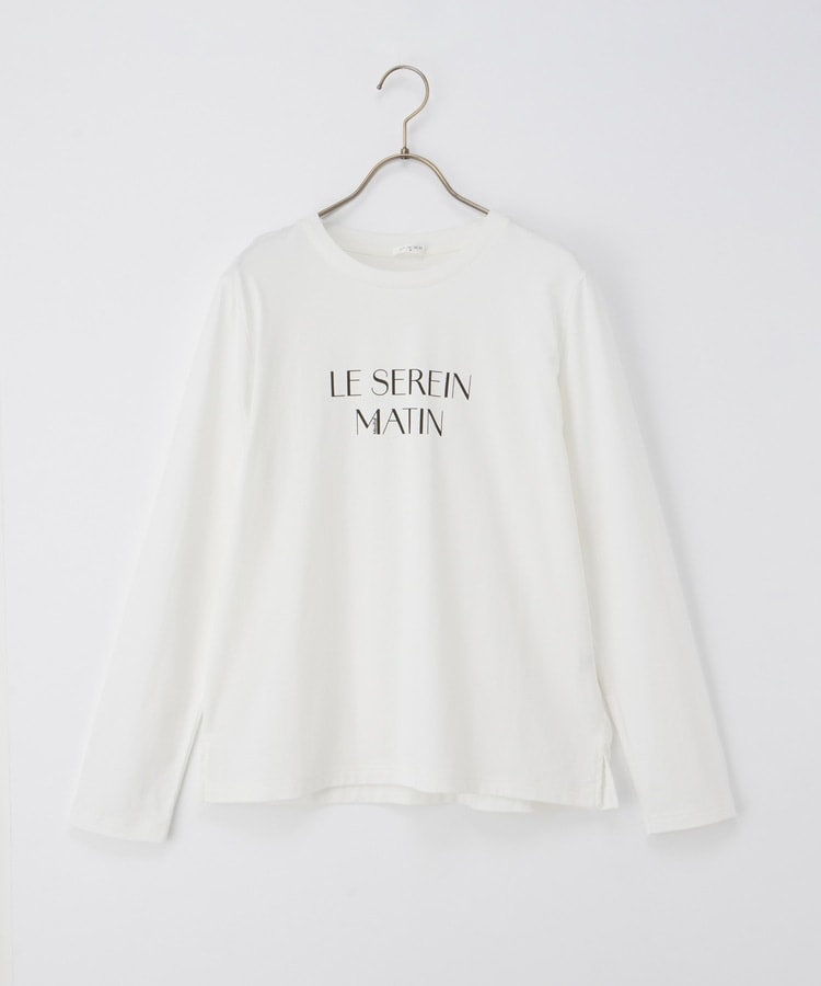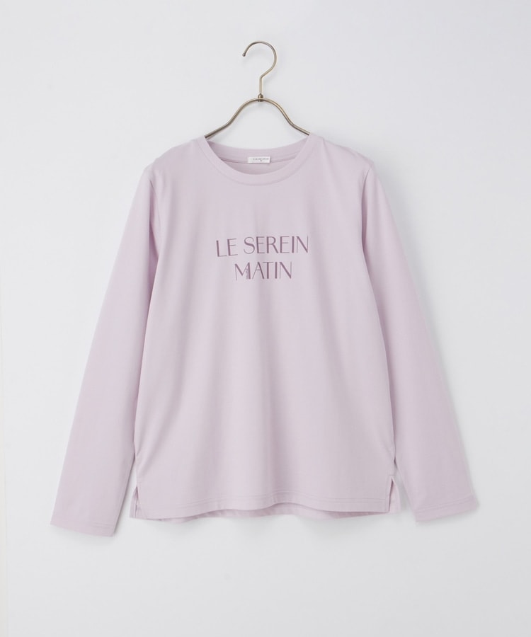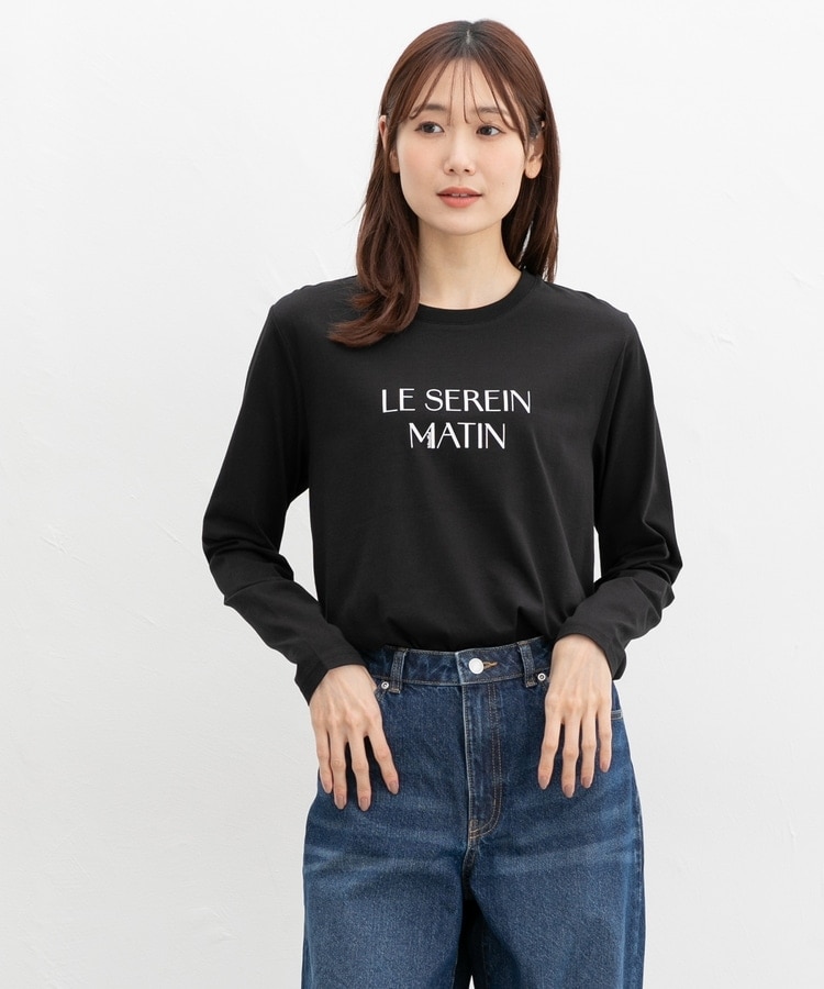 丸みのある、フェミニンなネックラインのシンプルデザインに、おしゃれフォントのロゴがアクセント。
