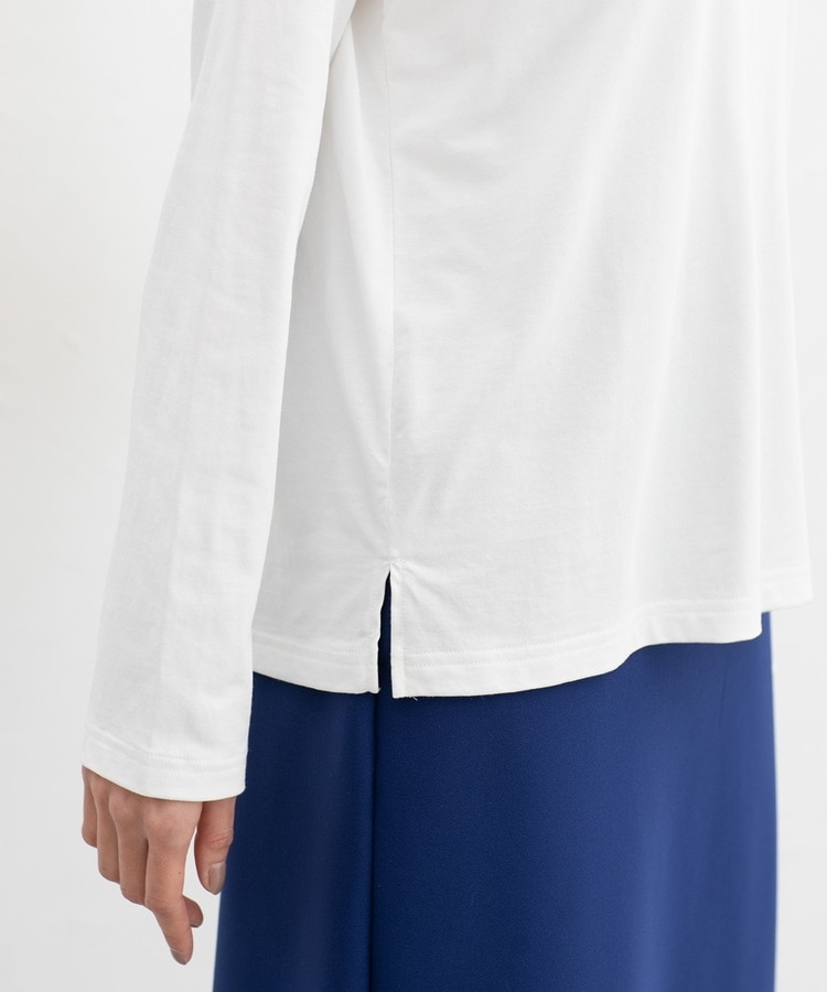 ゆったりめの幅と腰にかかる丈感で、どんなボトムスとも好相性。