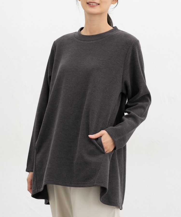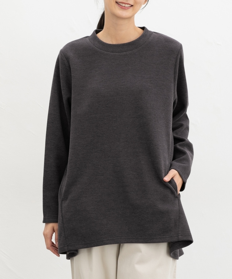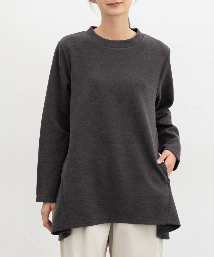 少し前寄りのサイドラインと前後差ヘムでこなれ感をプラス。
