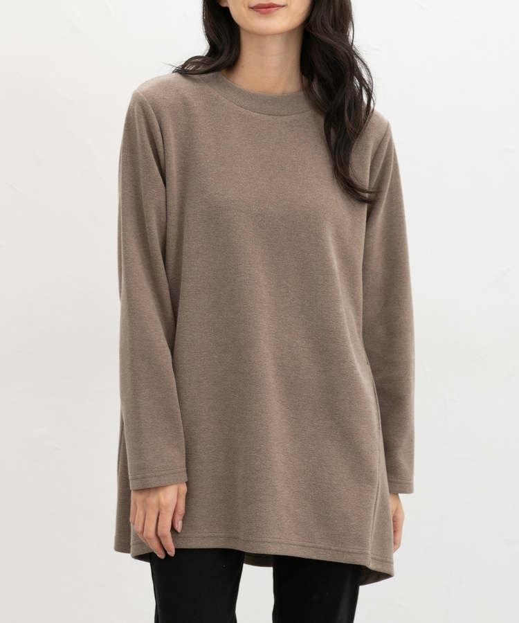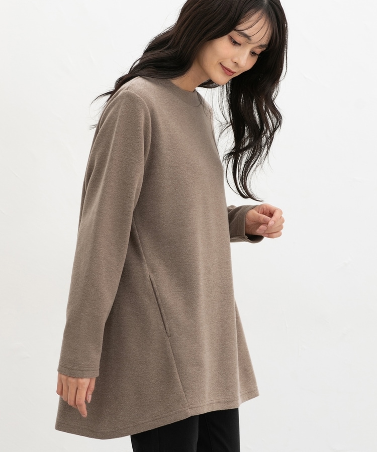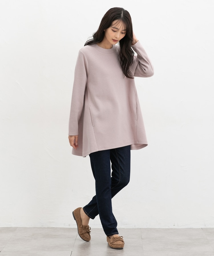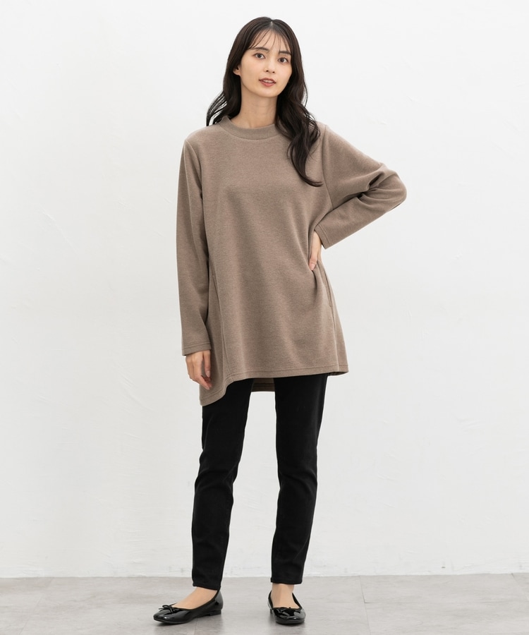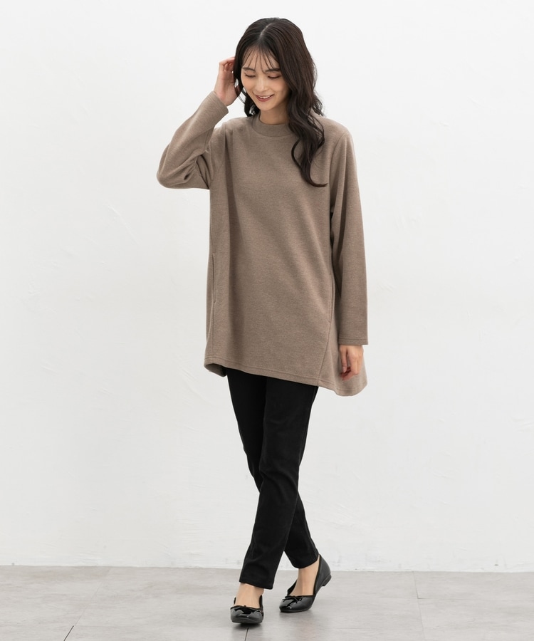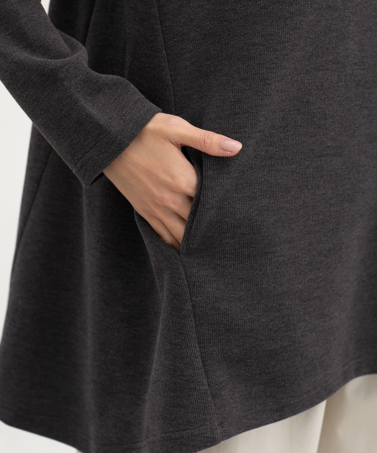 ゆったりめの幅とヒップまですっぽり隠れる丈感。