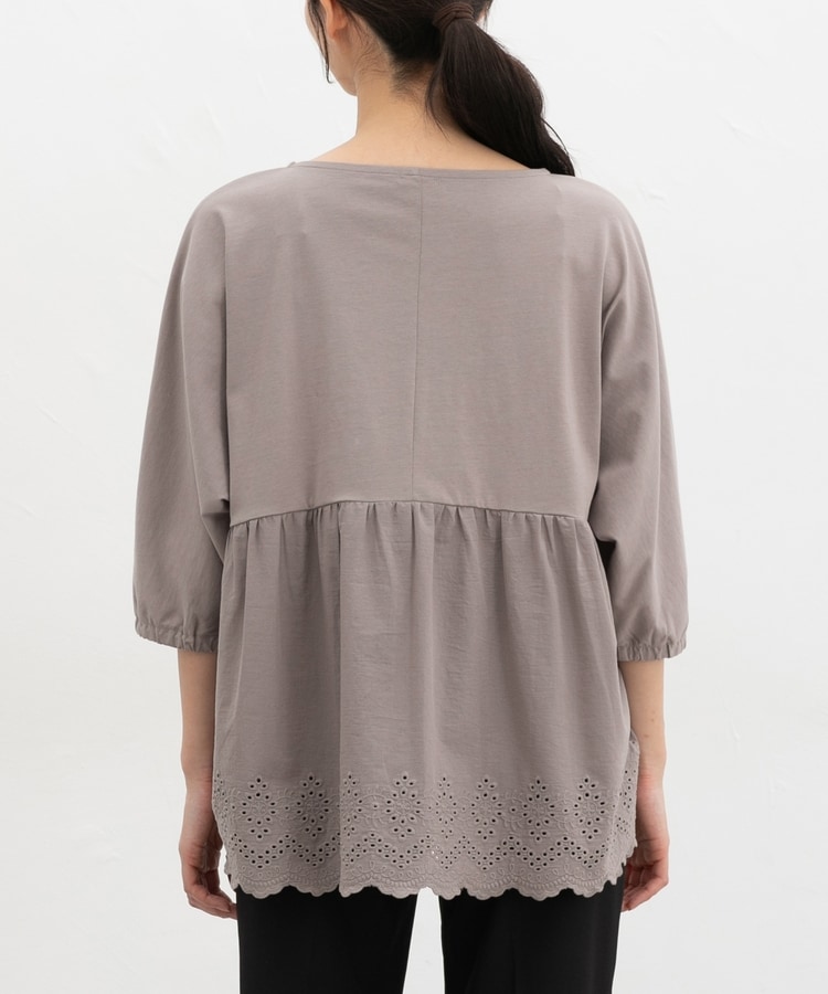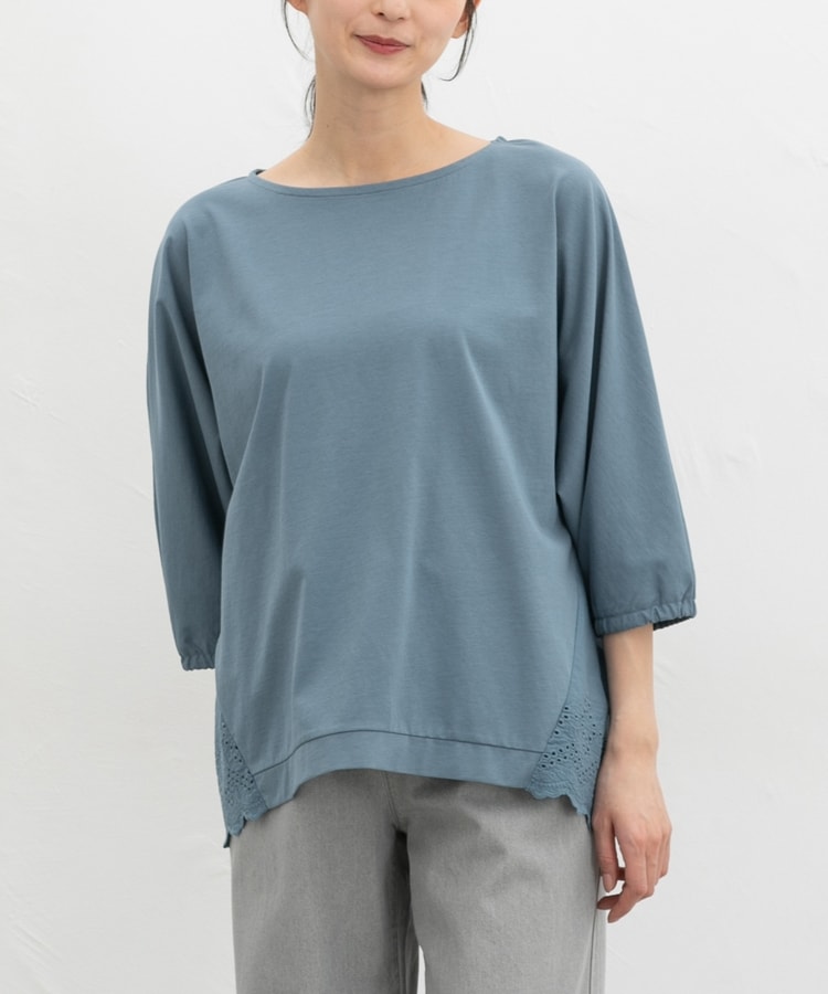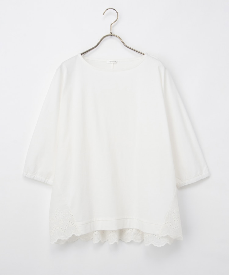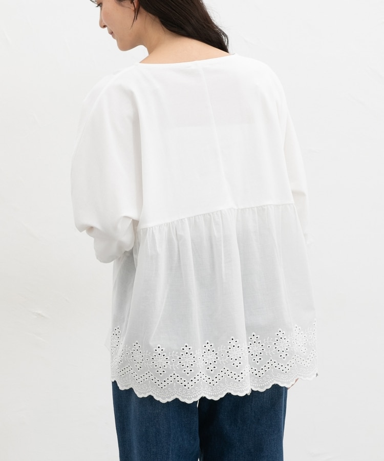 バックからサイドにかけてナチュラルなコットンレースで切り替えた大人可愛いデザイン。