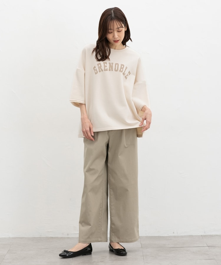 ゆったり幅とヒップが隠れる丈感で体型もカバー。