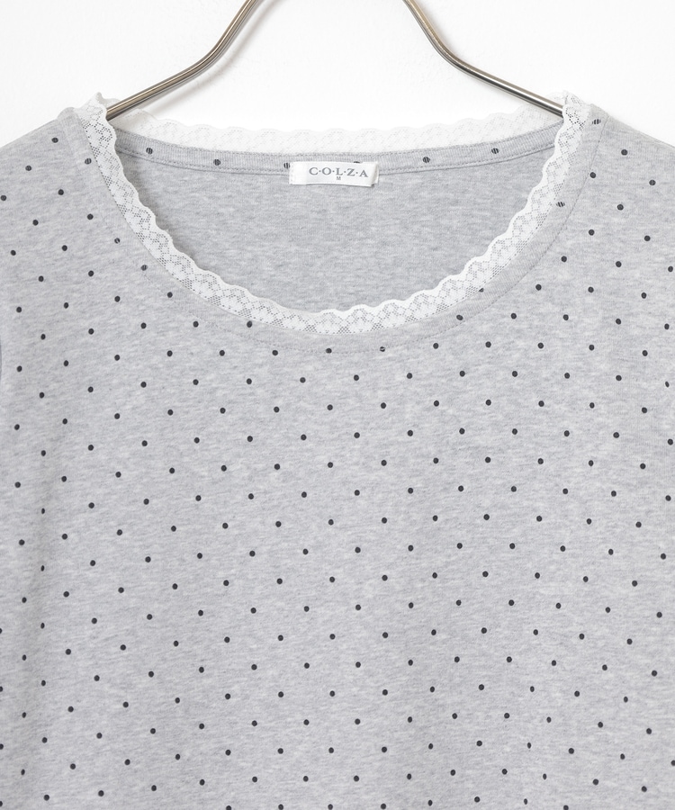 衿ぐりの繊細なレースがフェミニンなアクセント。