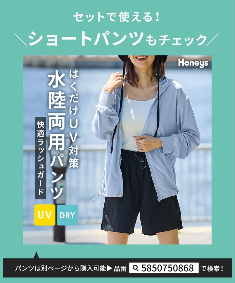 素早く乾く『速乾ドライ』と、気になる菌やにおいにも安心の『抗菌防臭』、紫外線対策ができる『UVカット』の機能機能が付いた『ハニさら・アクティブウェア』シリーズ。