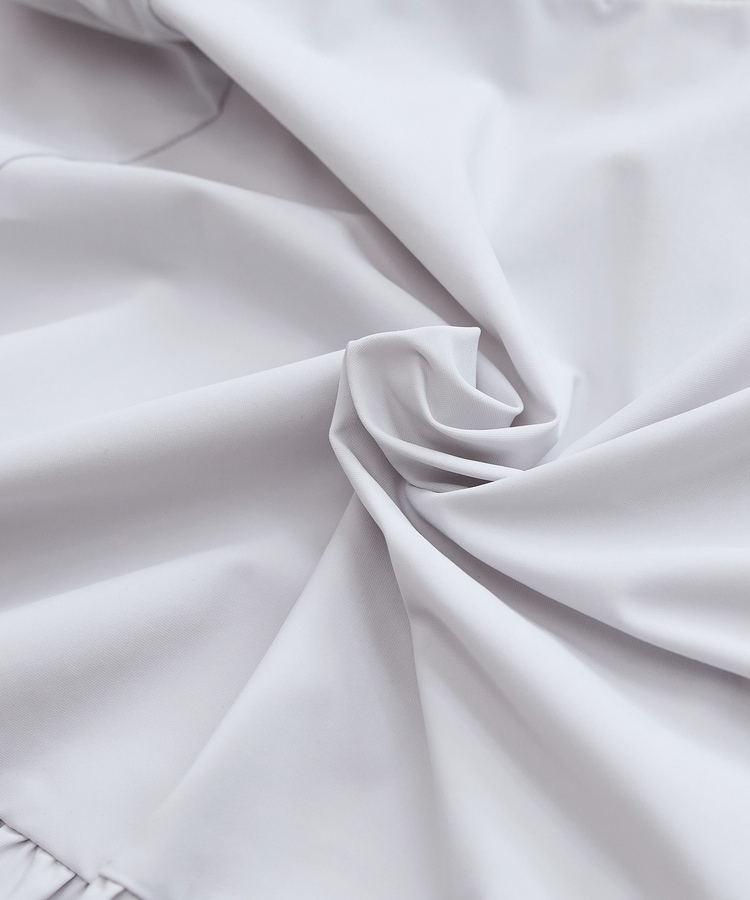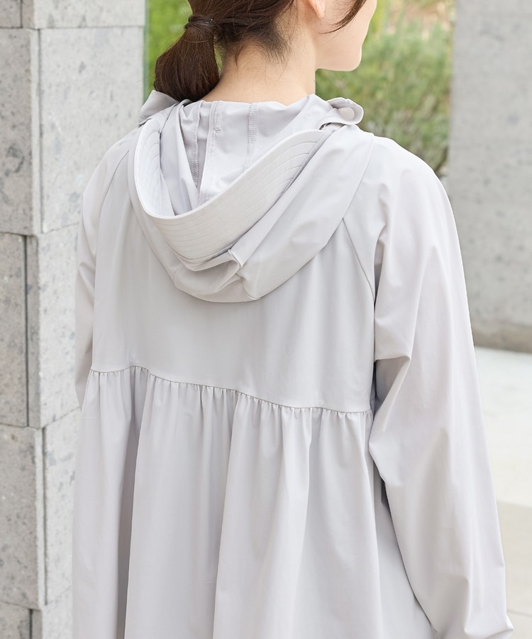 背中に切り替えのあるAラインシルエットで体型を自然にカバー。