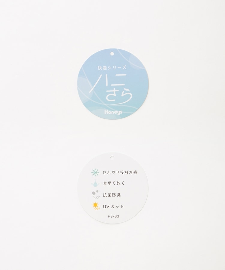ひんやり快適な『接触冷感』と、素早く乾く『速乾ドライ』、気になる菌やにおいにも安心の『抗菌防臭』、紫外線対策ができる『UVカット』の機能が付いた『ハニさら』アイテム。