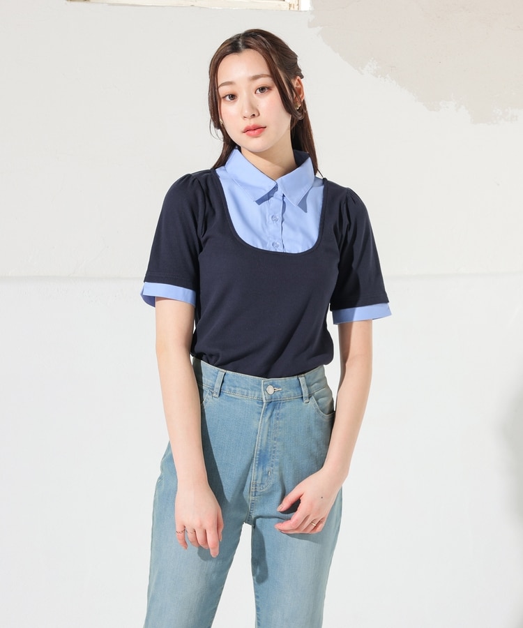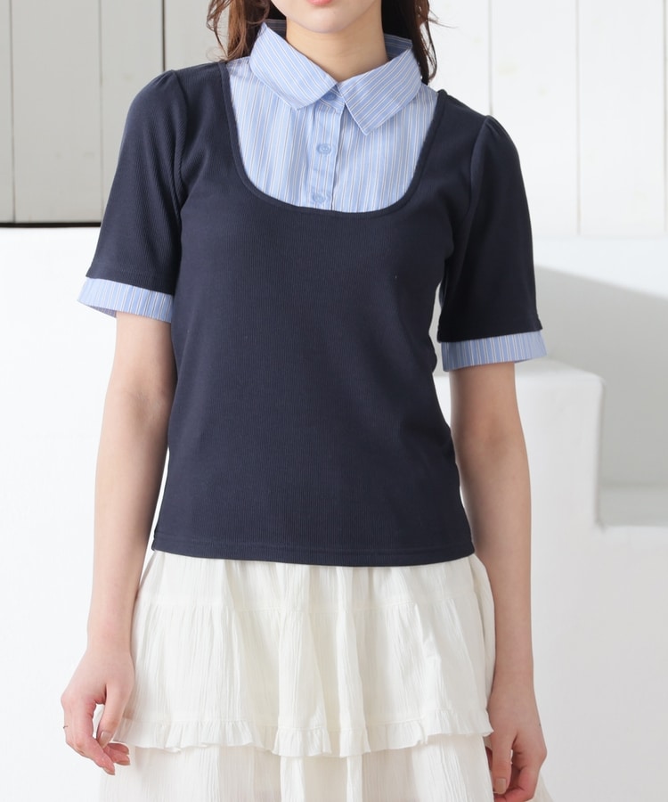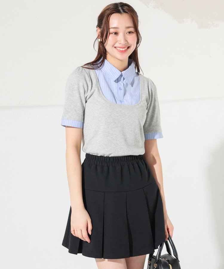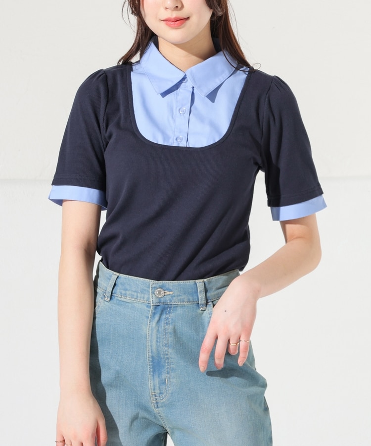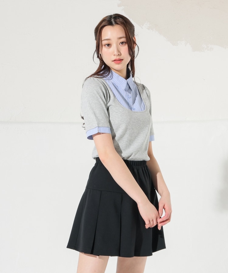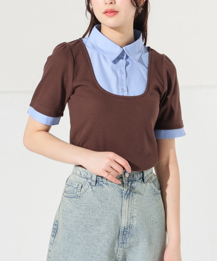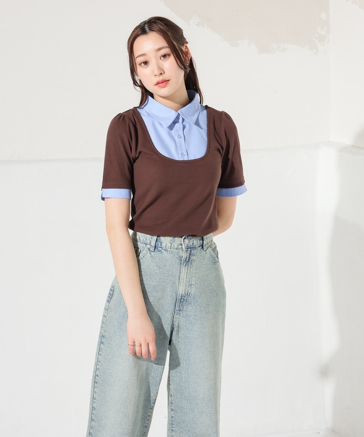 1枚でコーデが決まる、スクエアトップス×ベーシックシャツのレイヤード風デザイン。