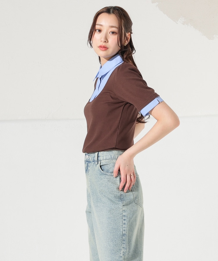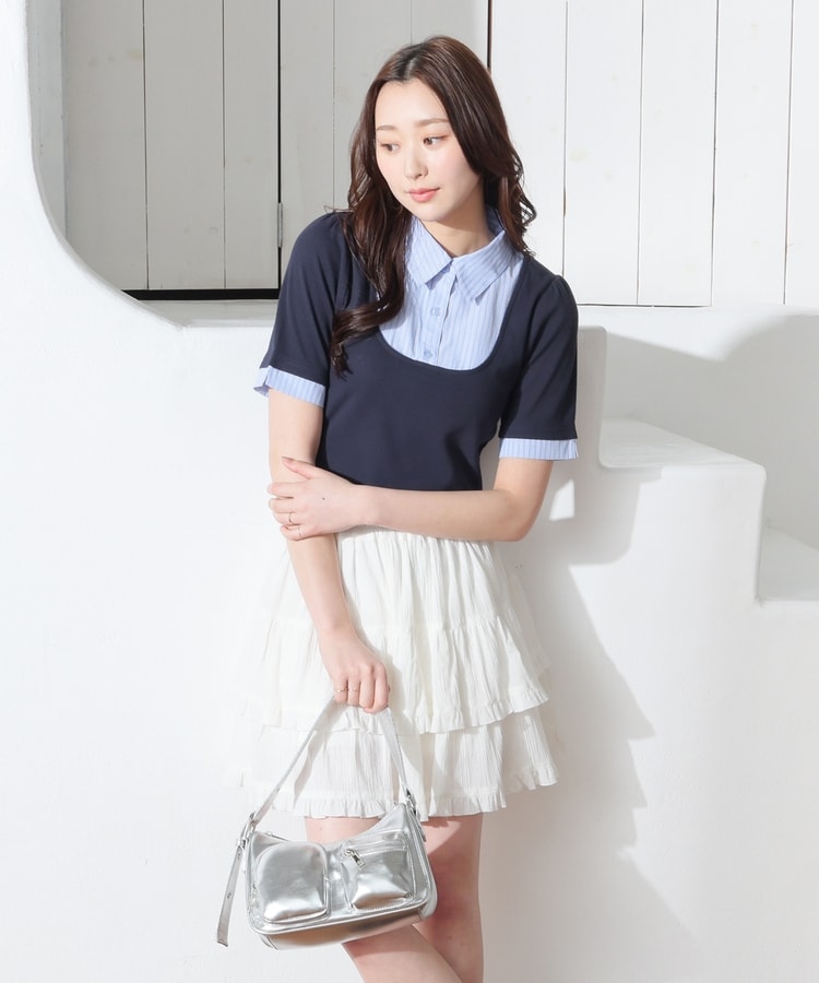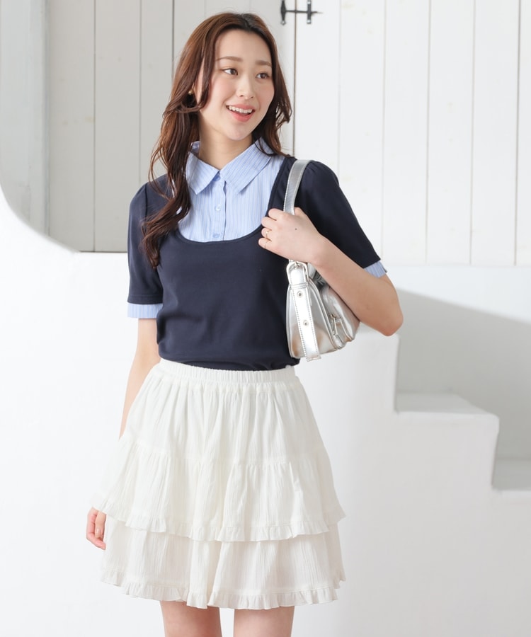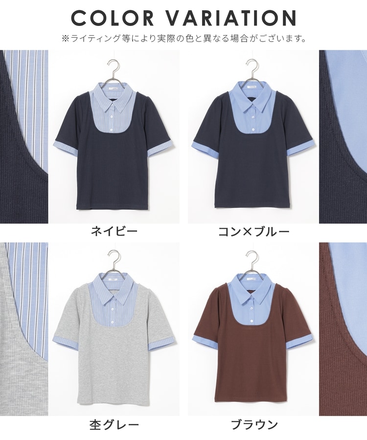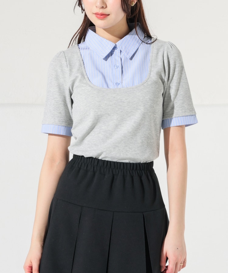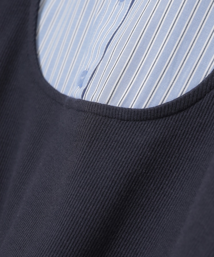 1枚でコーデが決まる、スクエアトップス×ベーシックシャツのレイヤード風デザイン。
