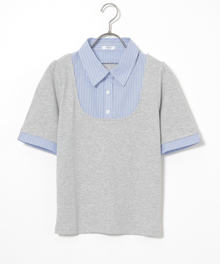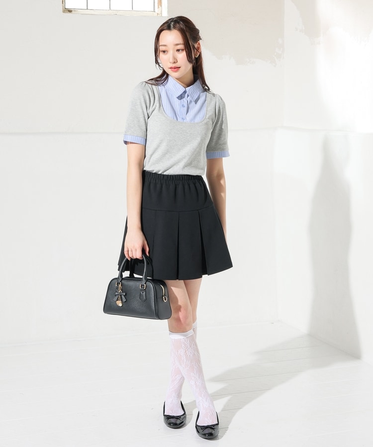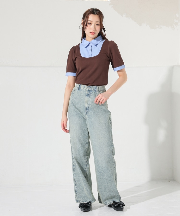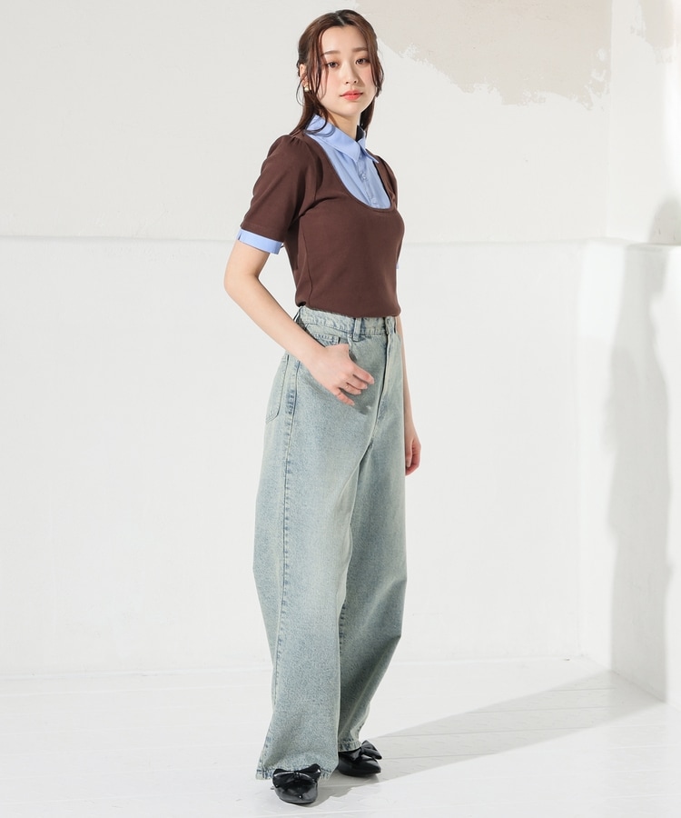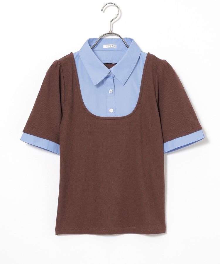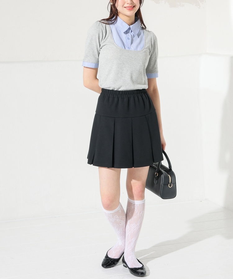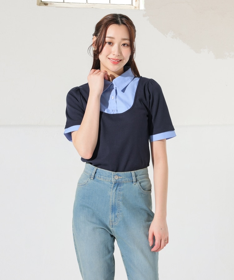 1枚でコーデが決まる、スクエアトップス×ベーシックシャツのレイヤード風デザイン。