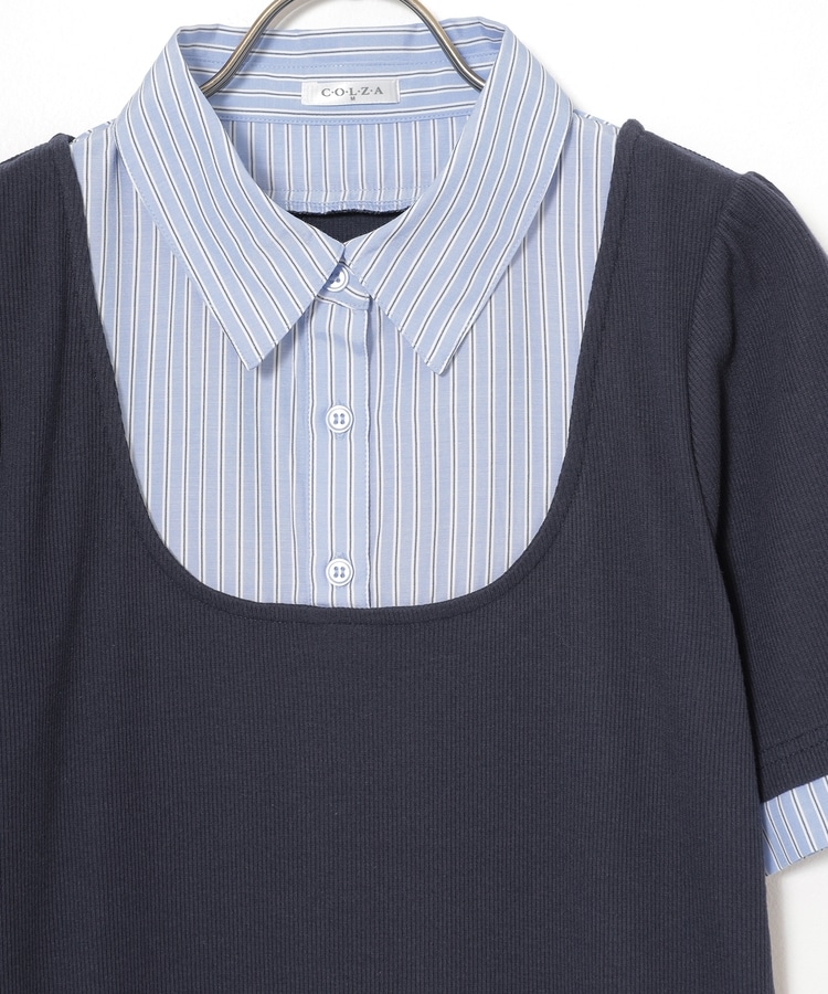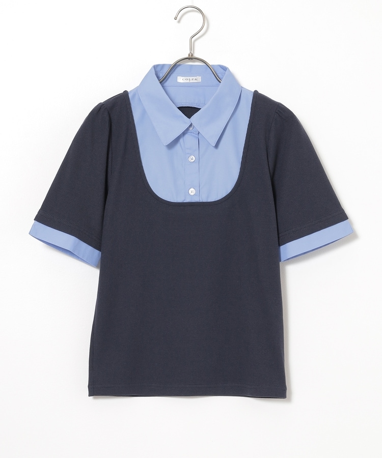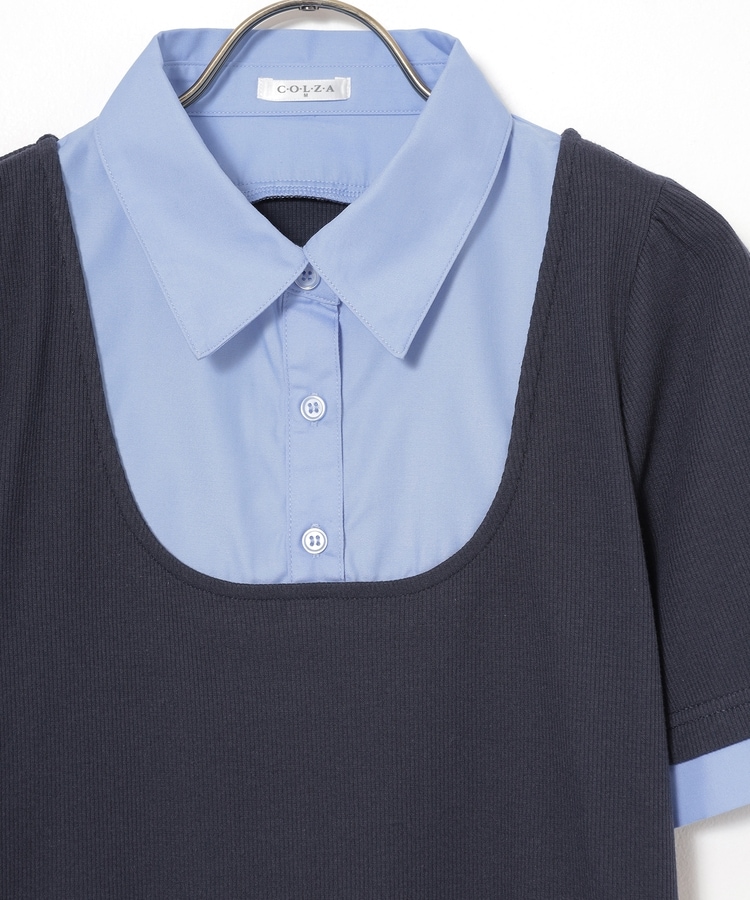 シャツ部分はきちんと感のあるレギュラーカラーにボタン付きで着脱も楽らく。