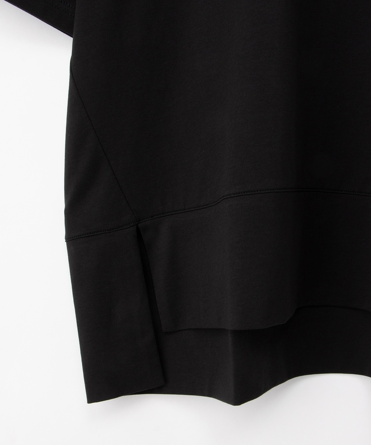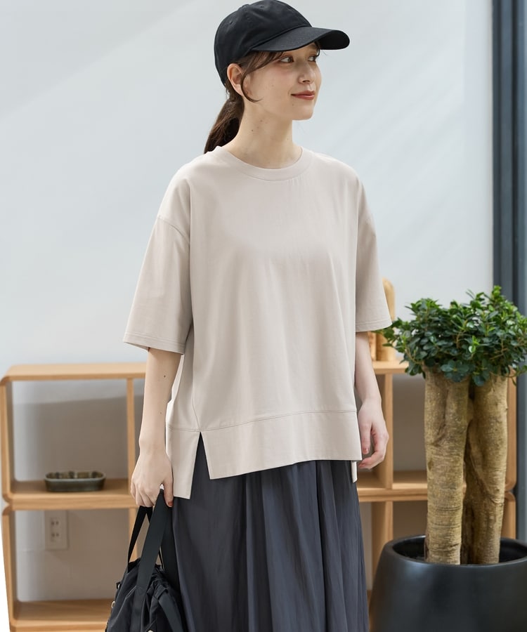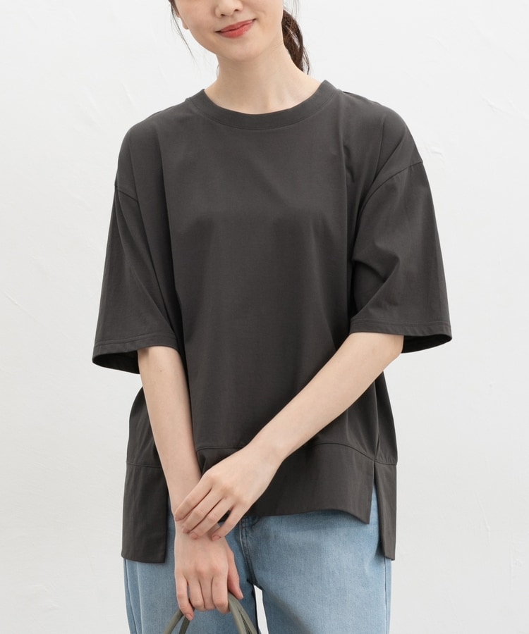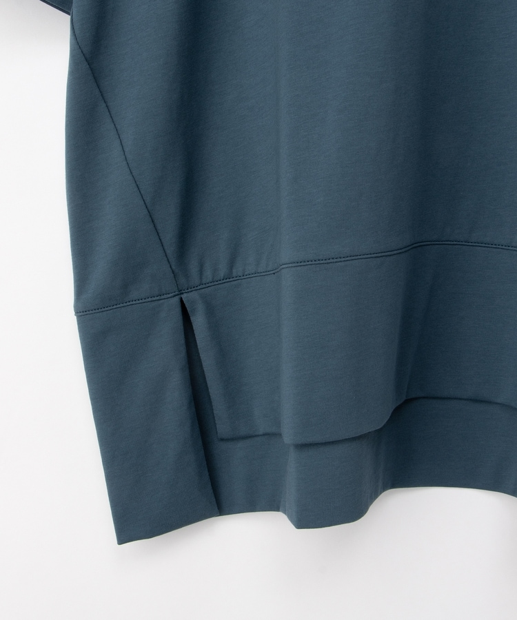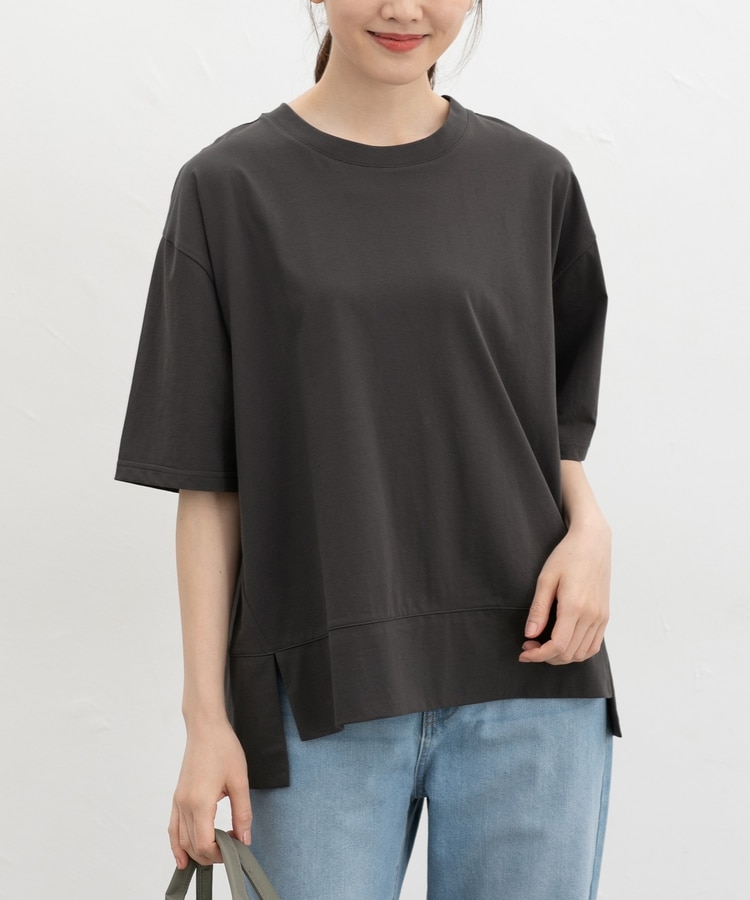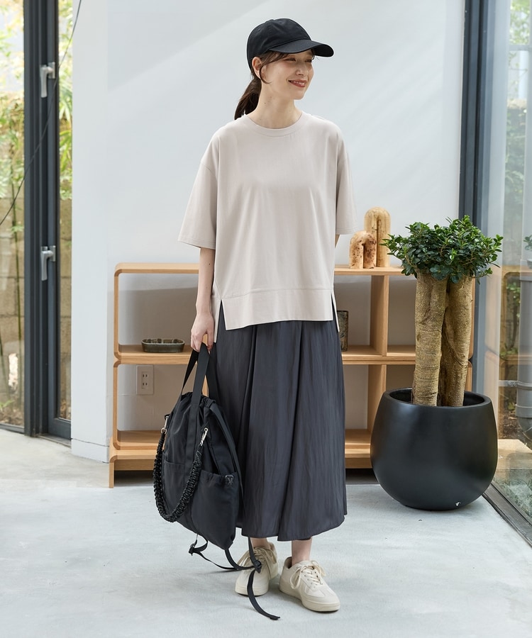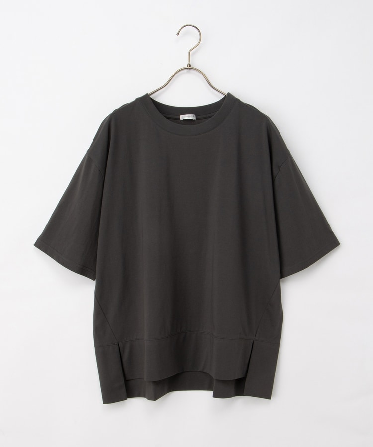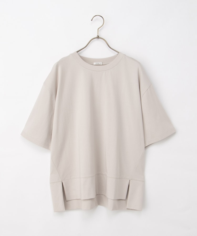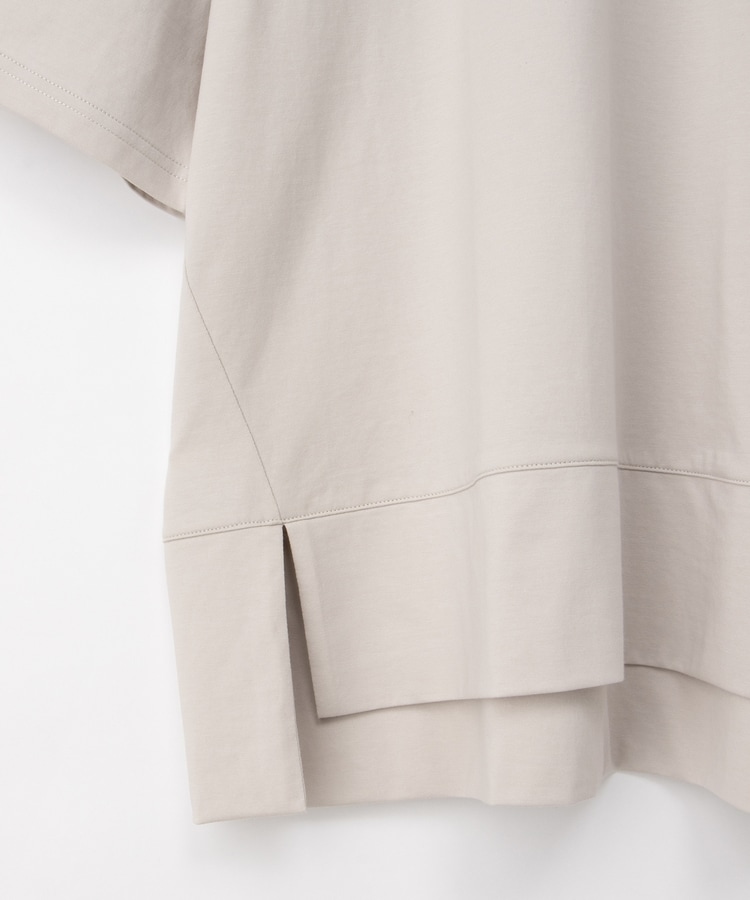 ヒップまで隠れる丈感のビッグシルエットと長めのスリットで、こなれ感とストレスフリーな着心地を両立。