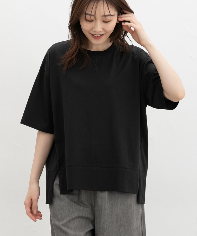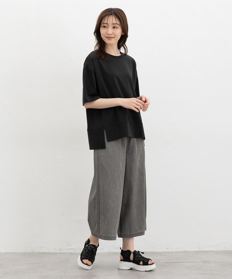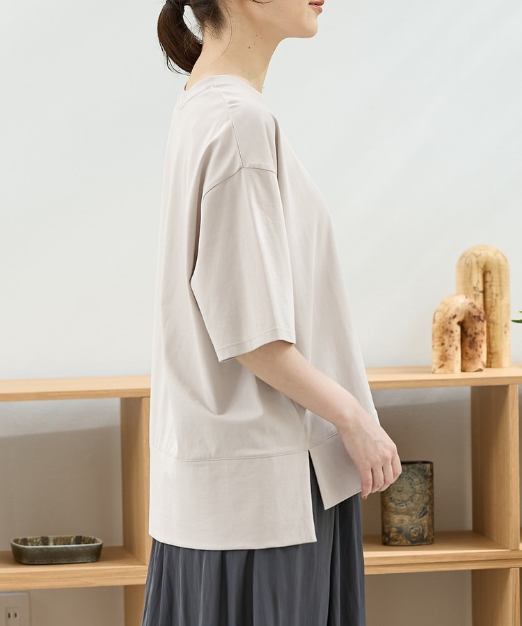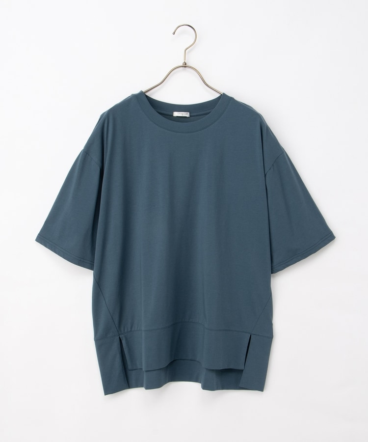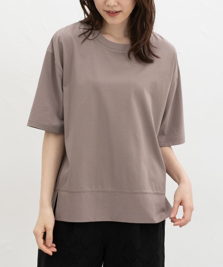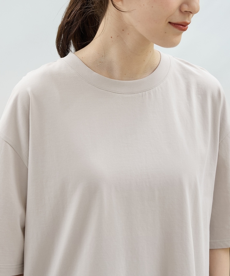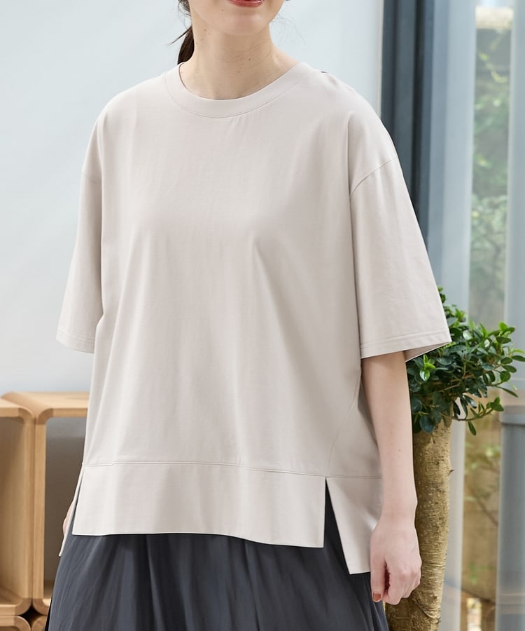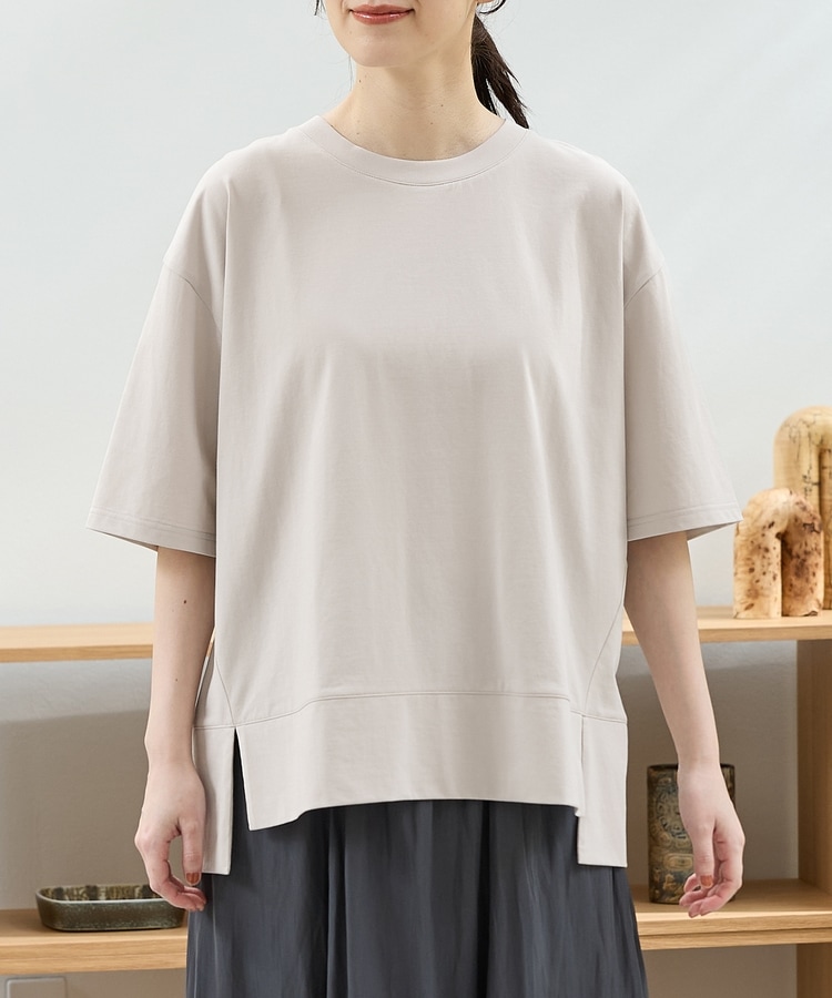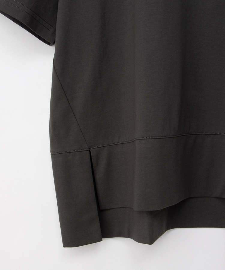 ヒップまで隠れる丈感のビッグシルエットと長めのスリットで、こなれ感とストレスフリーな着心地を両立。
