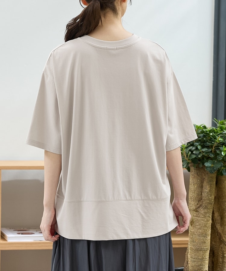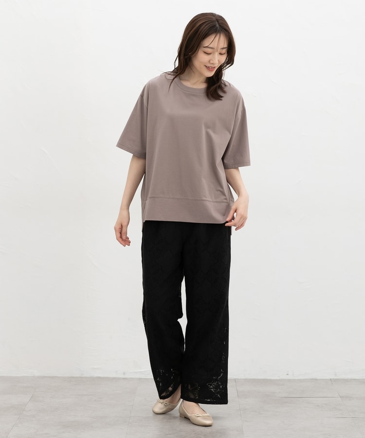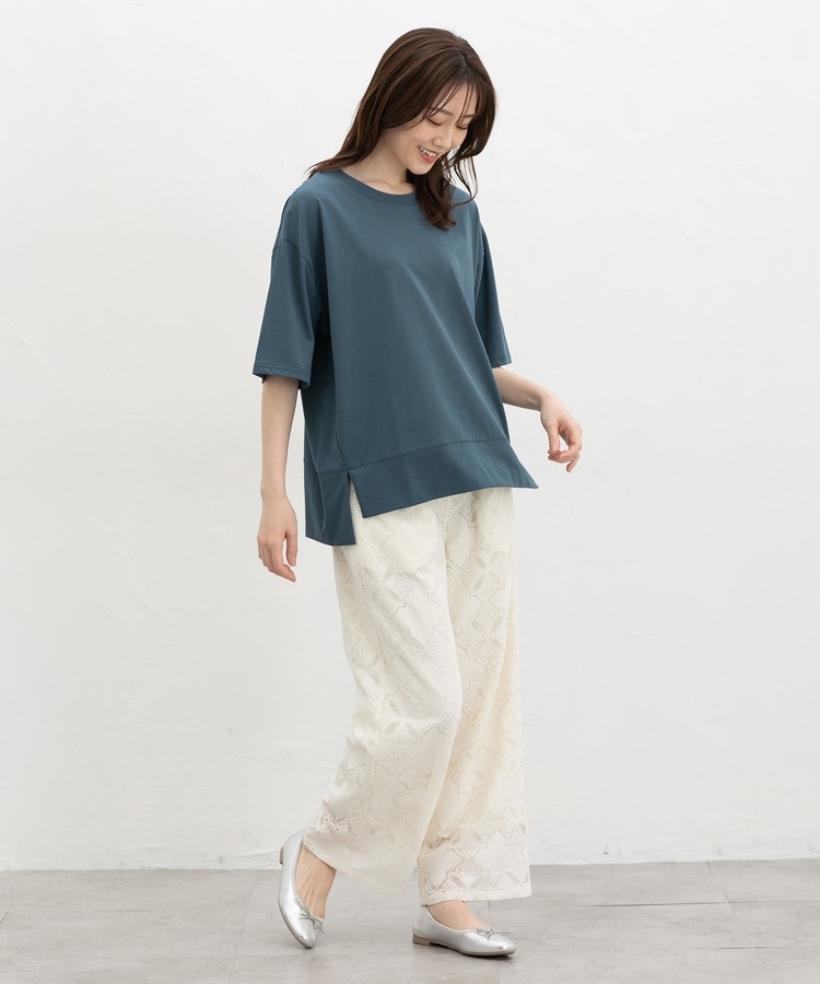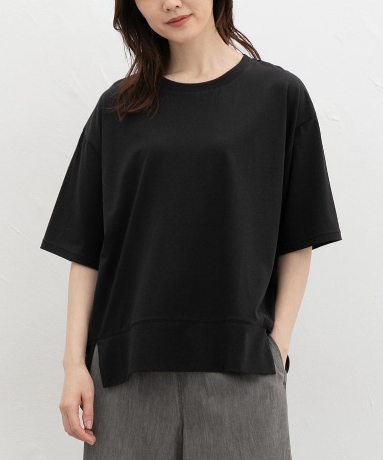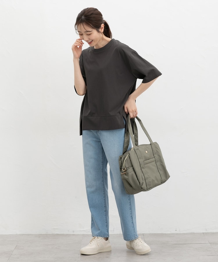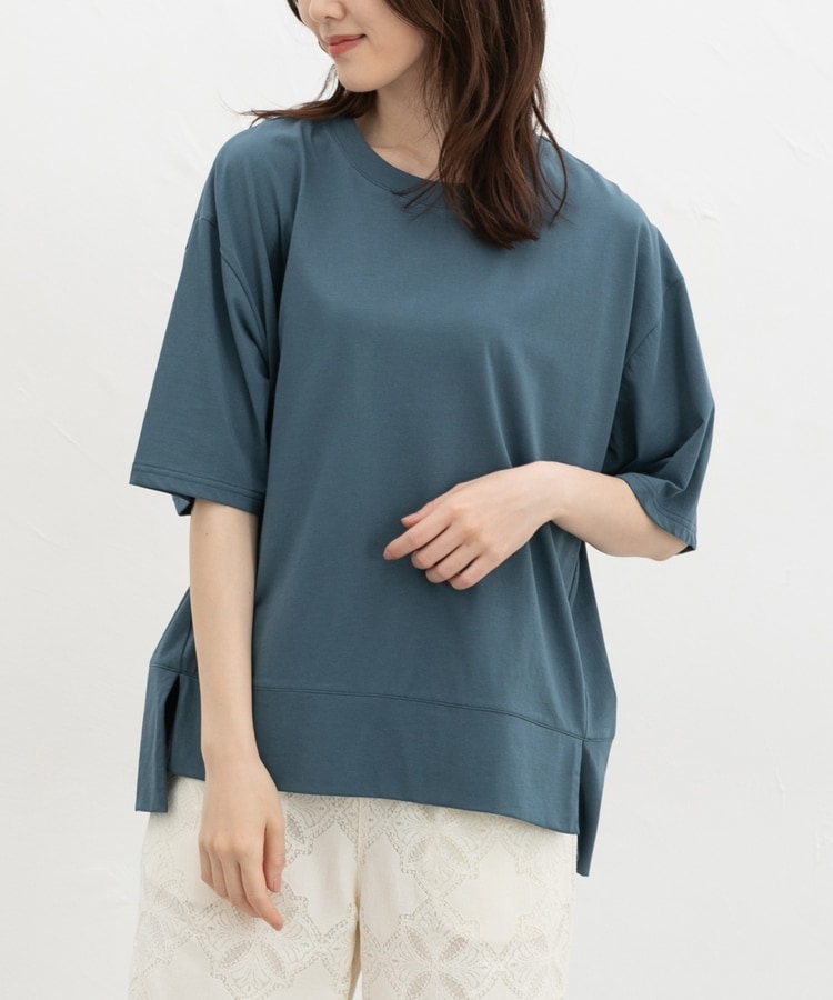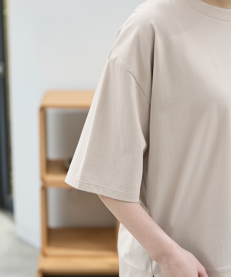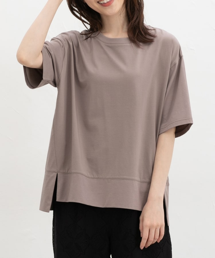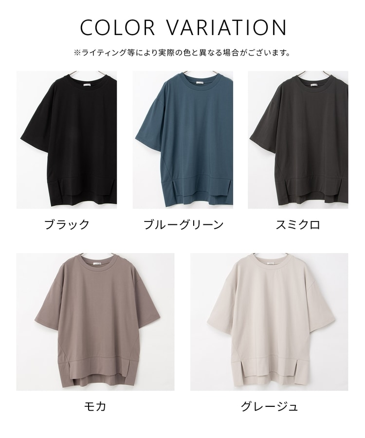 ヒップまで隠れる丈感のビッグシルエットと長めのスリットで、こなれ感とストレスフリーな着心地を両立。