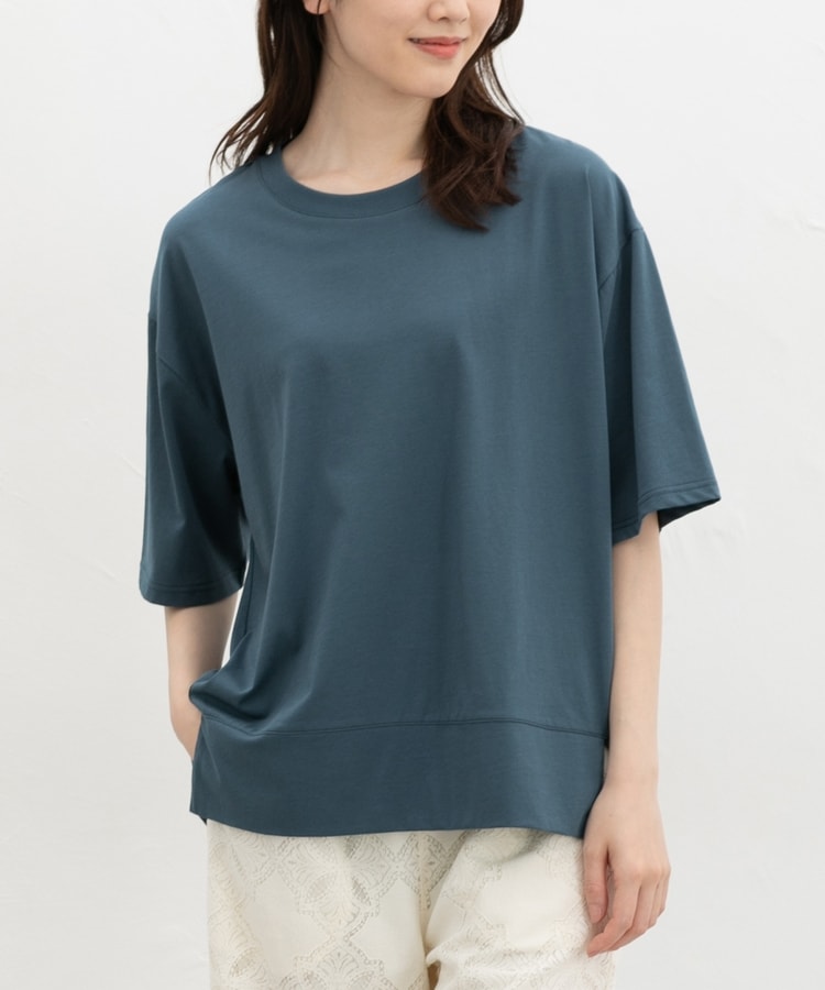 程よくハリがあり、さらりとした肌触りの綿混素材。