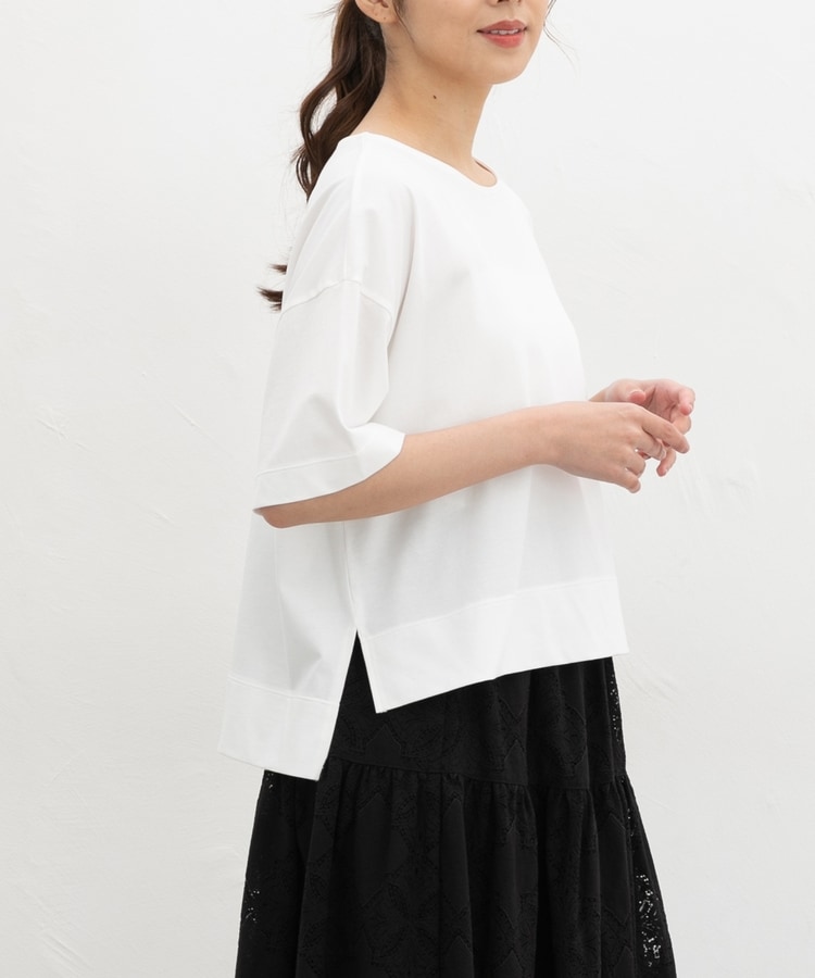 前後差ヘムのゆるシルエットと両サイドスリットで、こなれ感のあるシンプルデザイン。