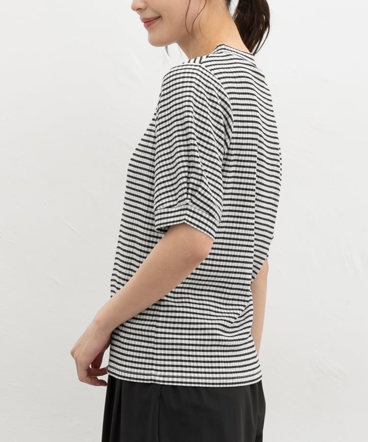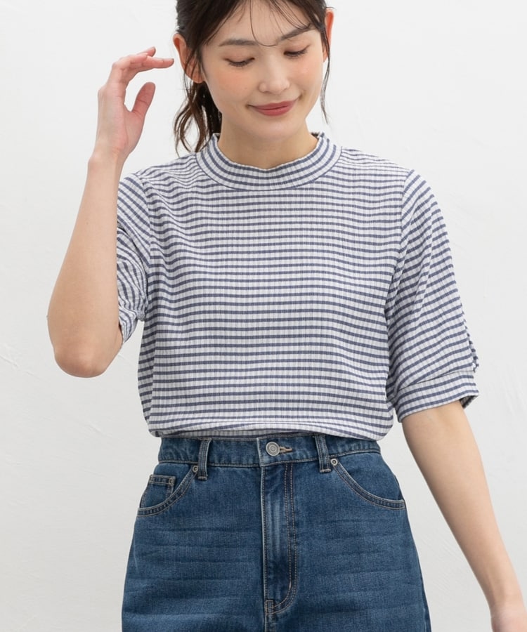 二の腕を華奢に見せる長めの半袖。