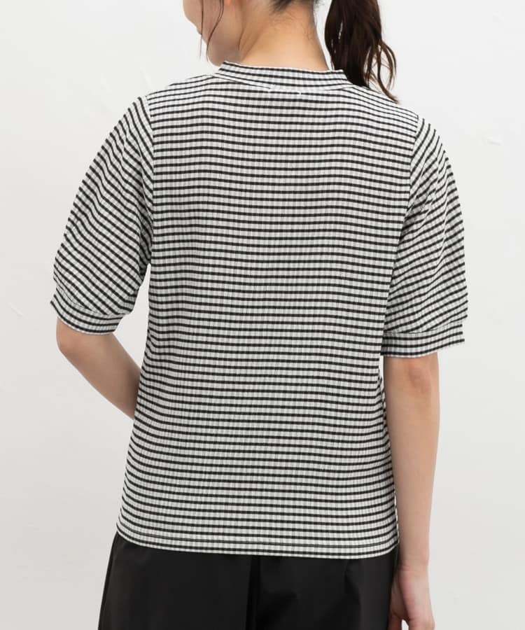 タック入りの控えめボリューム袖とチェック柄が、上品で大人可愛いデザイン。