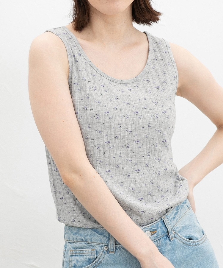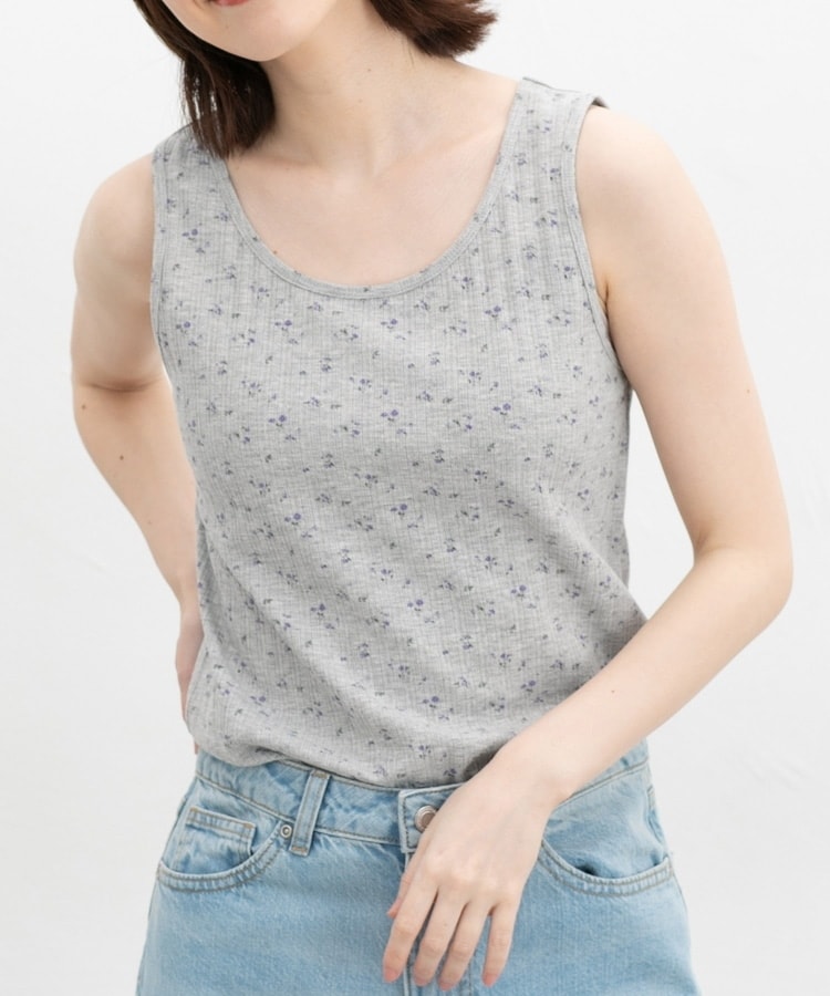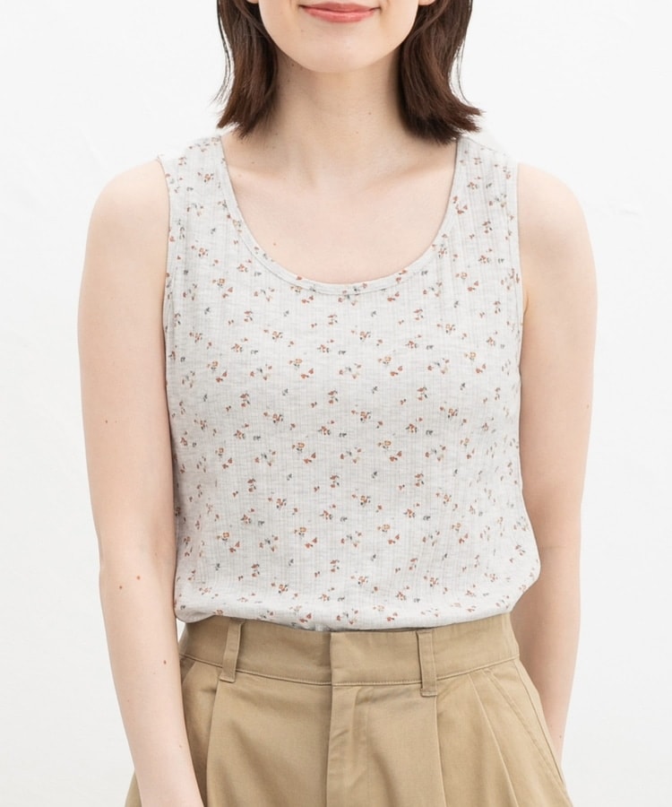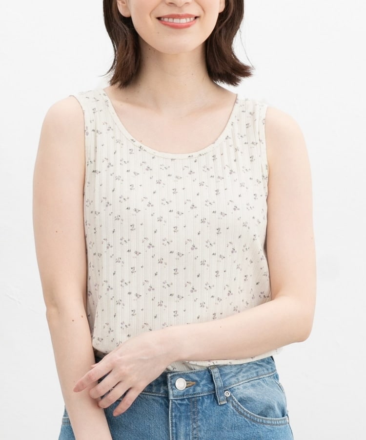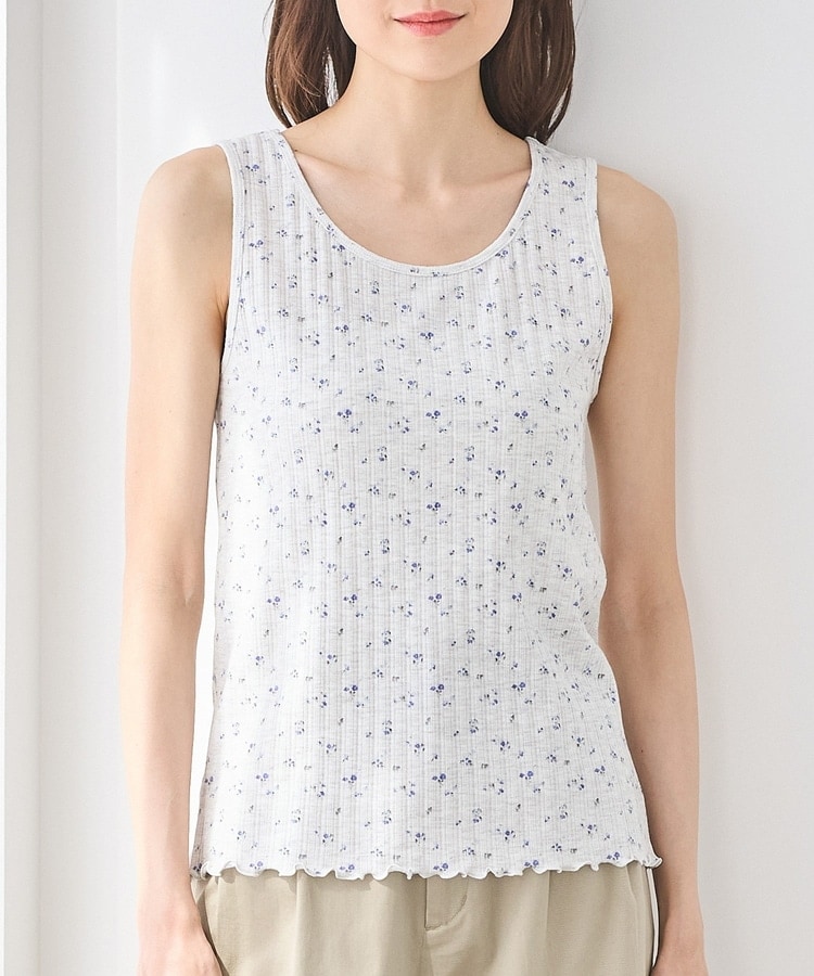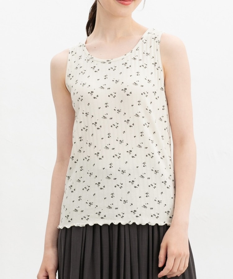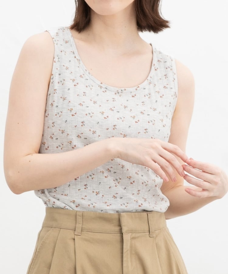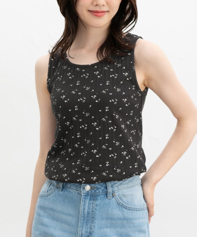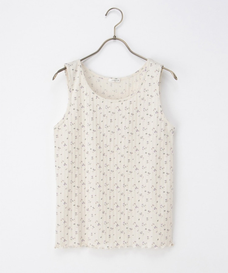 おしゃれなパターンメッシュの編柄に総花柄をプリントした大人可愛いデザイン。