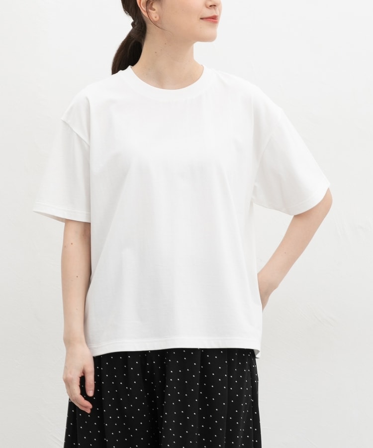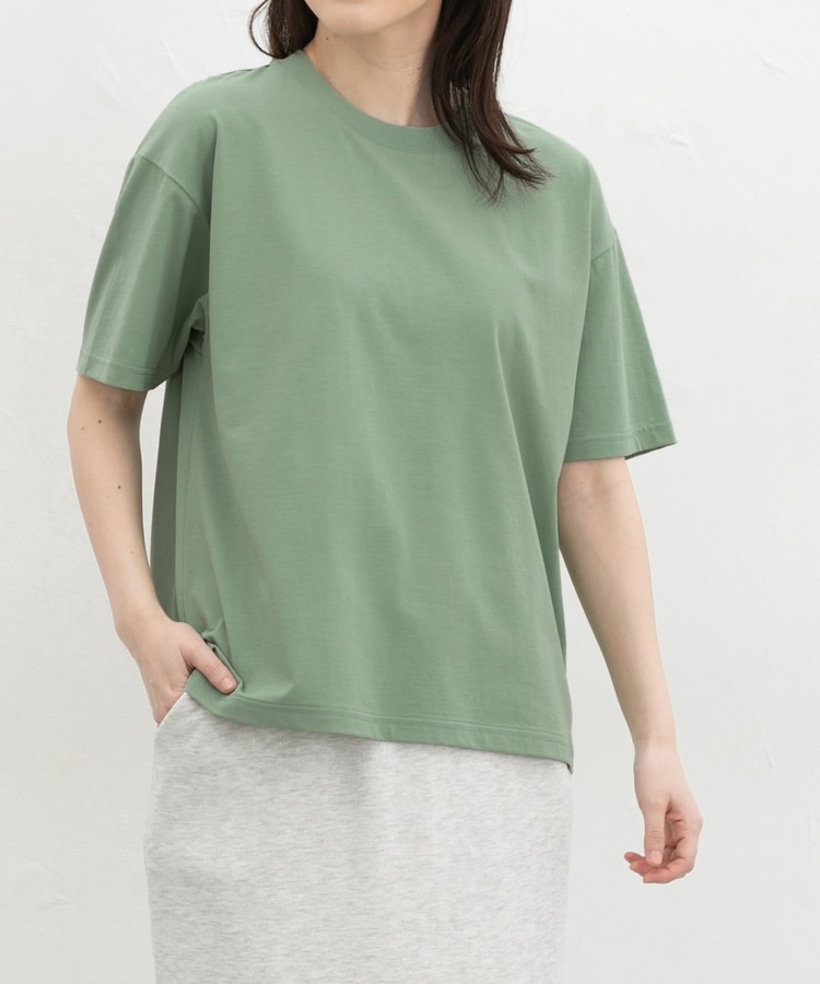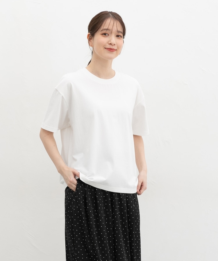程よくハリがあり、さらりとした肌触りの綿混素材。