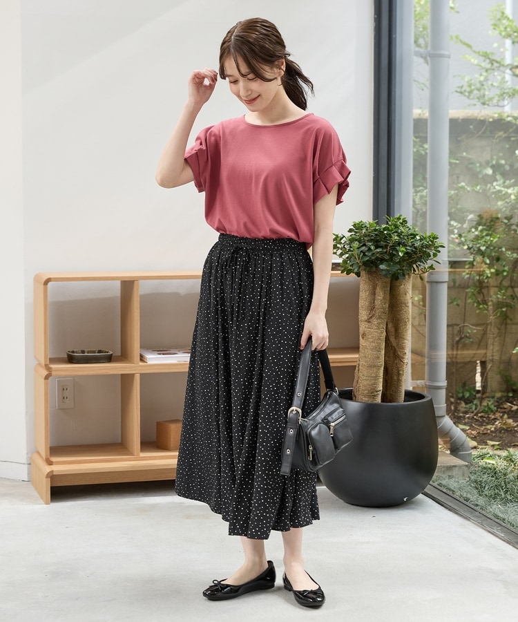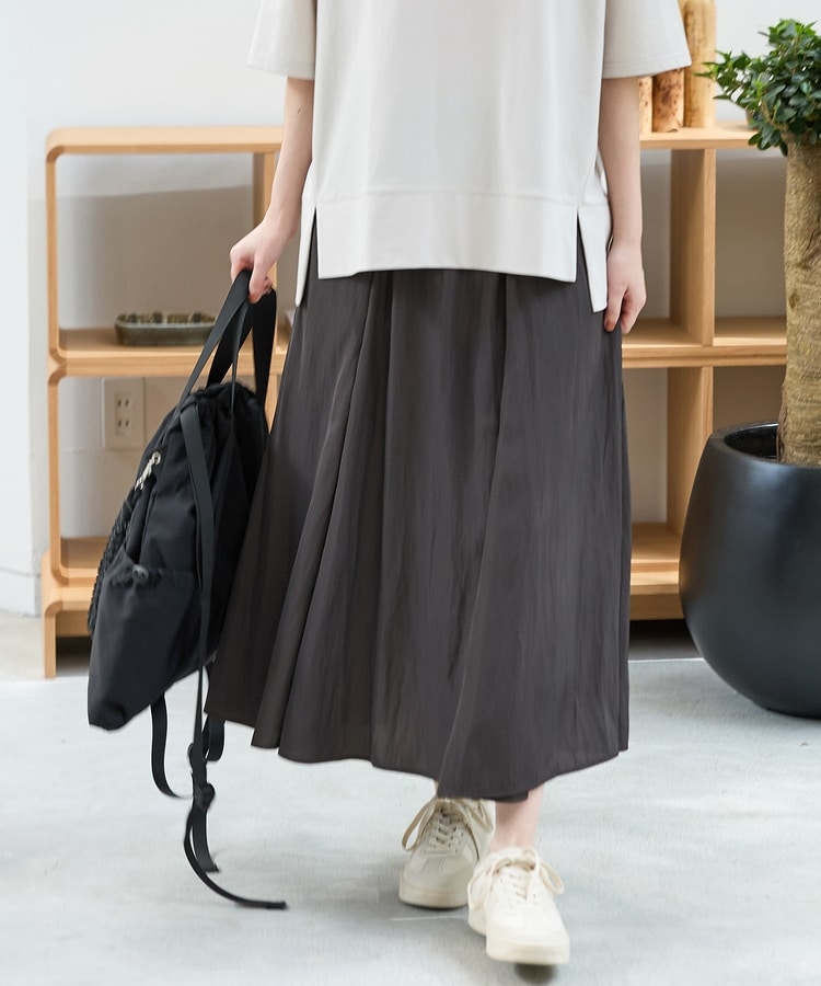 やや光沢感のある素材&たっぷりギャザーがおしゃれなデザイン。