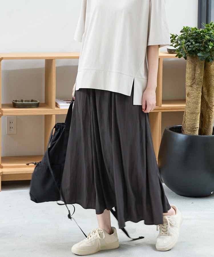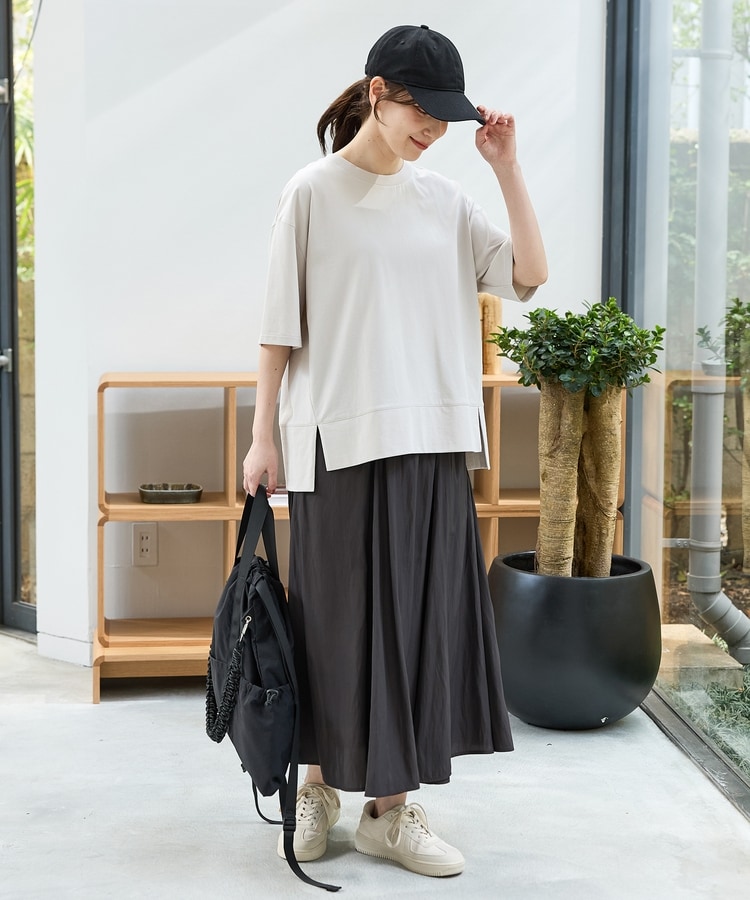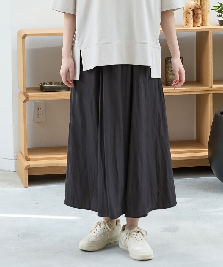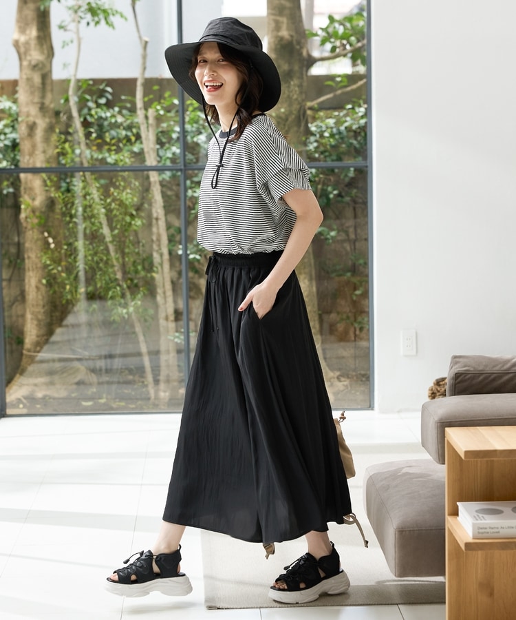 タンクトップやTシャツ、ブラウスなど、合わせるトップス次第で、リラックスシーンからちょっとしたお出かけまで幅広く大活躍。
