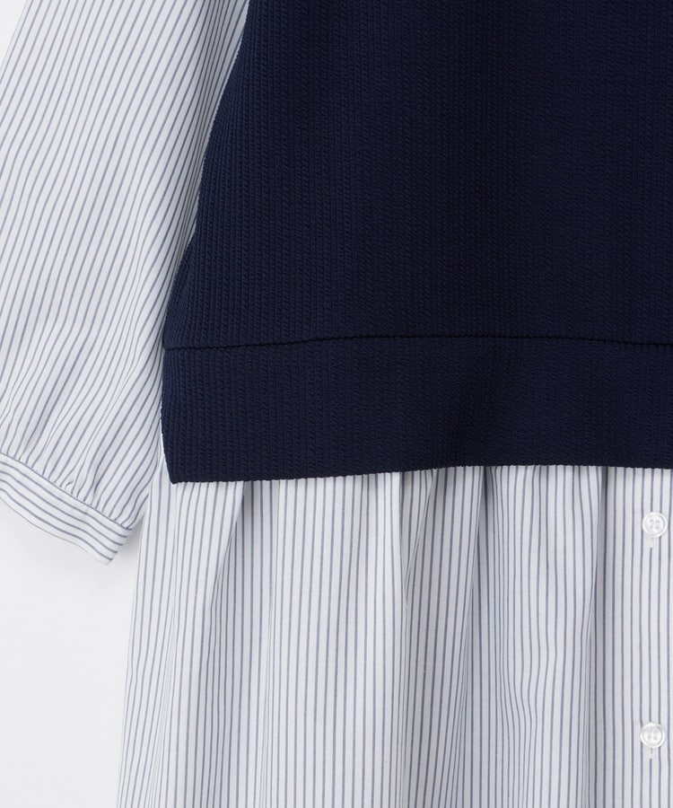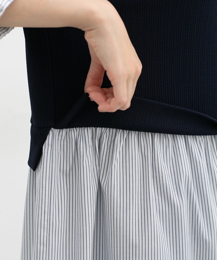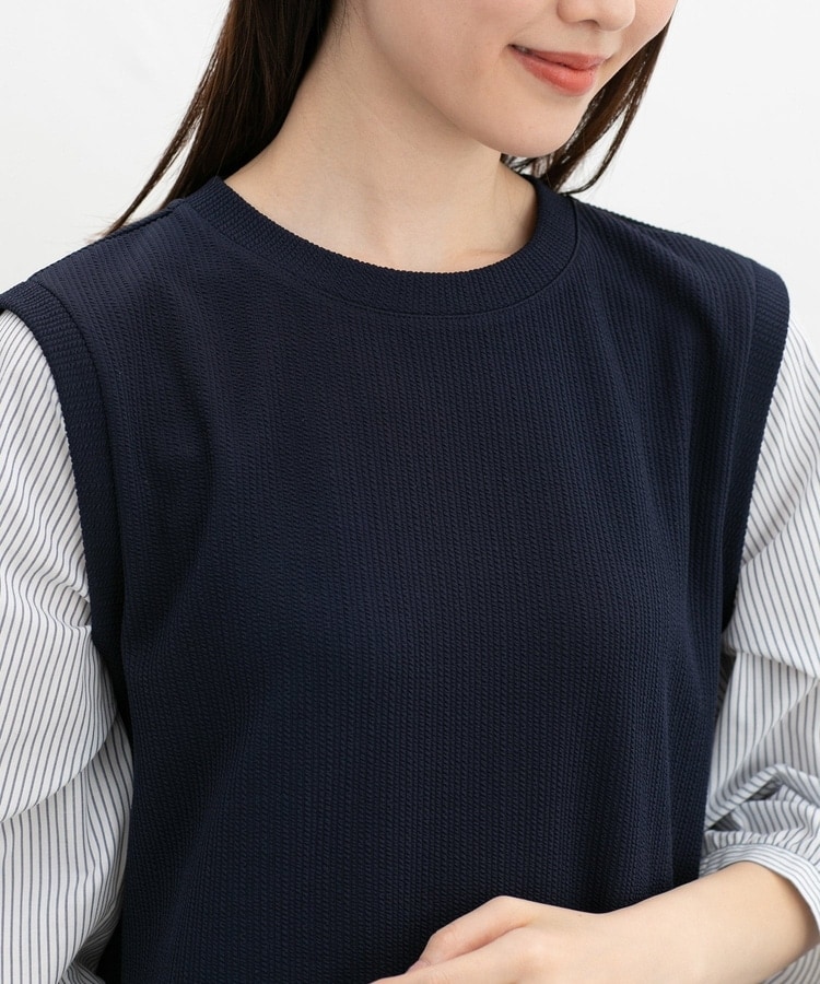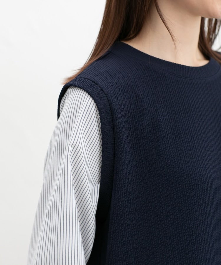 ワンピースにベストを重ねたような、1枚でコーデが決まるレイヤード風デザイン。