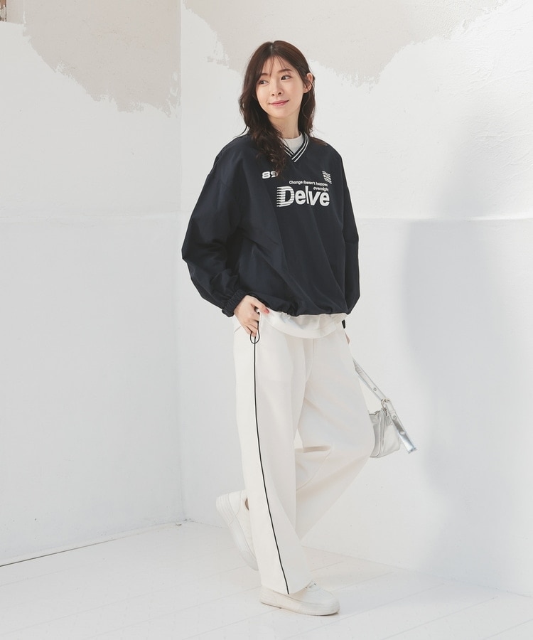 ロゴトップス合わせの王道カジュアルはもちろん、コンパクトなトップスと合わせてヘルシーに着こなすのも◎