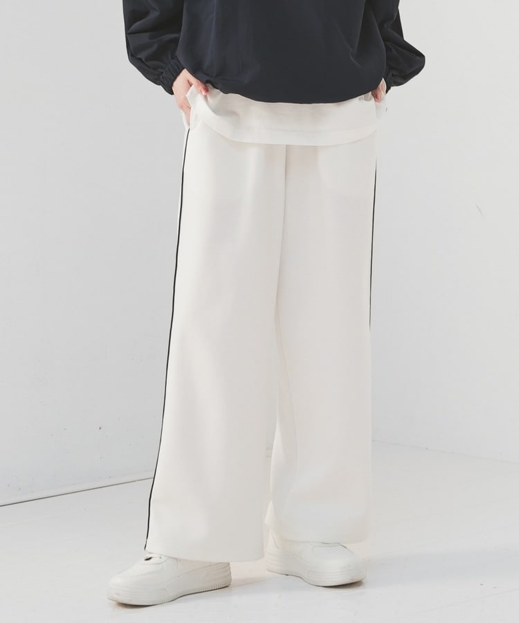 サイドのラインと、やや太めのワイドシルエットが今年らしいデザイン。