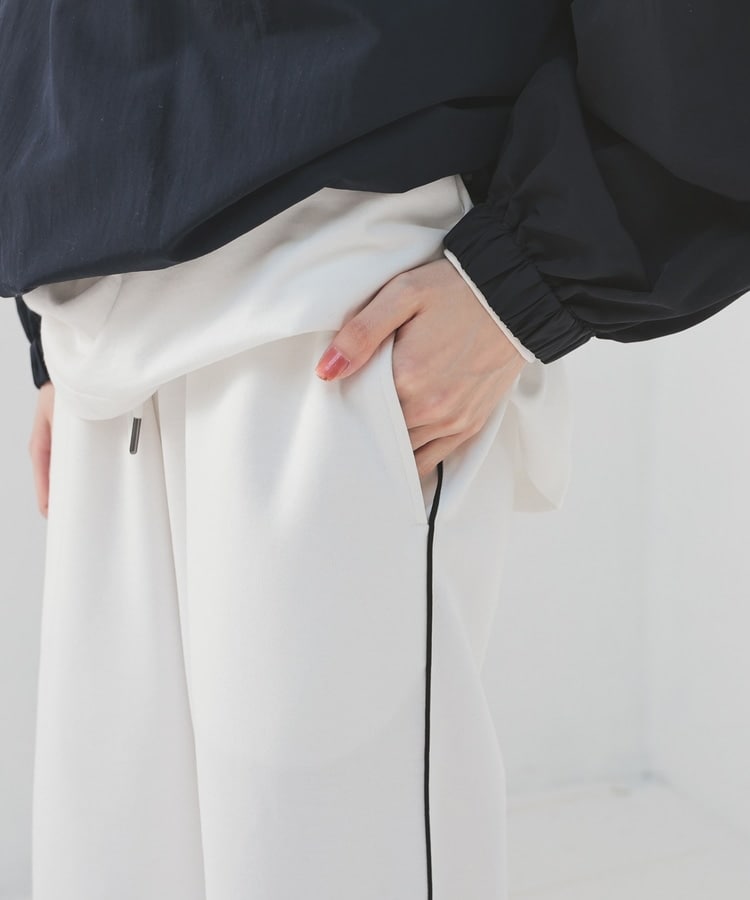 ウエストにはサイズの微調整ができて、さりげないアクセントにもなる共ひも入り。