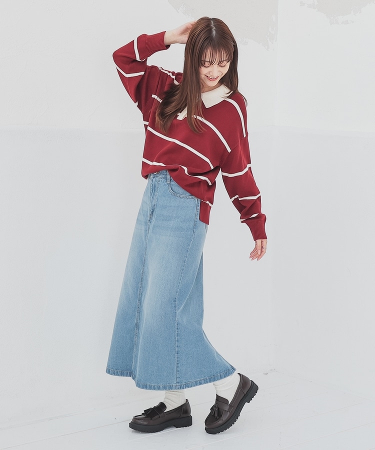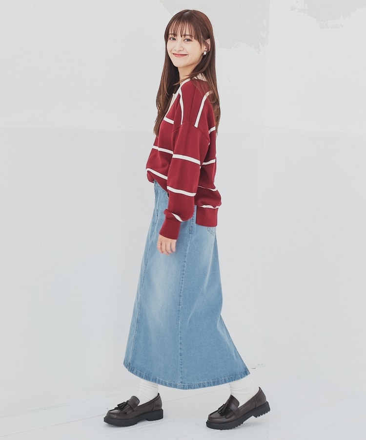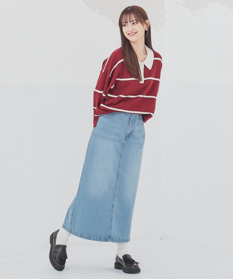 ボーダーTシャツやロゴスウェットと合わせたカジュアルスタイルはもちろん、ボウタイやハイネックのブラウスと合わせたMIXスタイルなどにも、幅広く活躍。