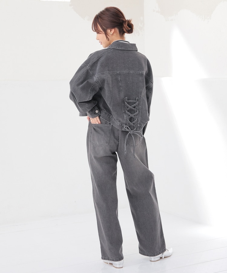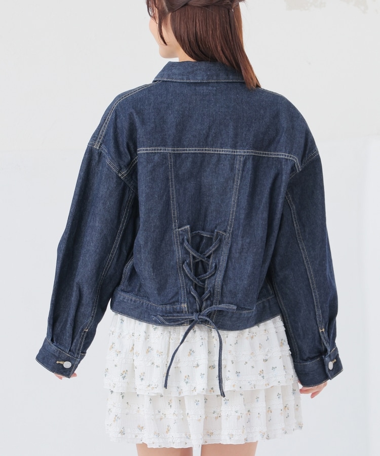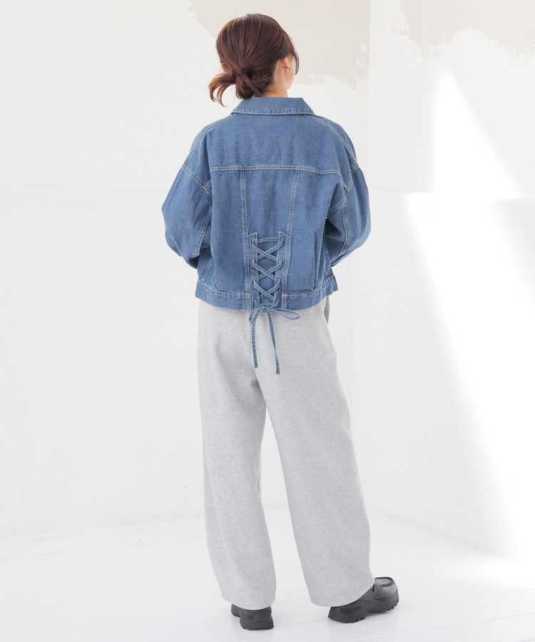 王道カジュアルにフェミニンムードをプラスする、バックレースアップデザイン。