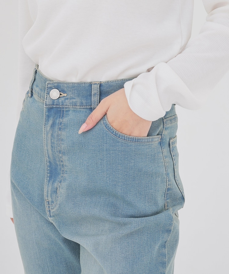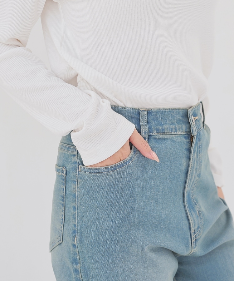 ストレッチの利いた綿混デニム素材で、動きやすくはき心地抜群。