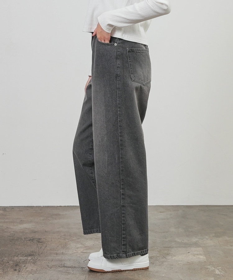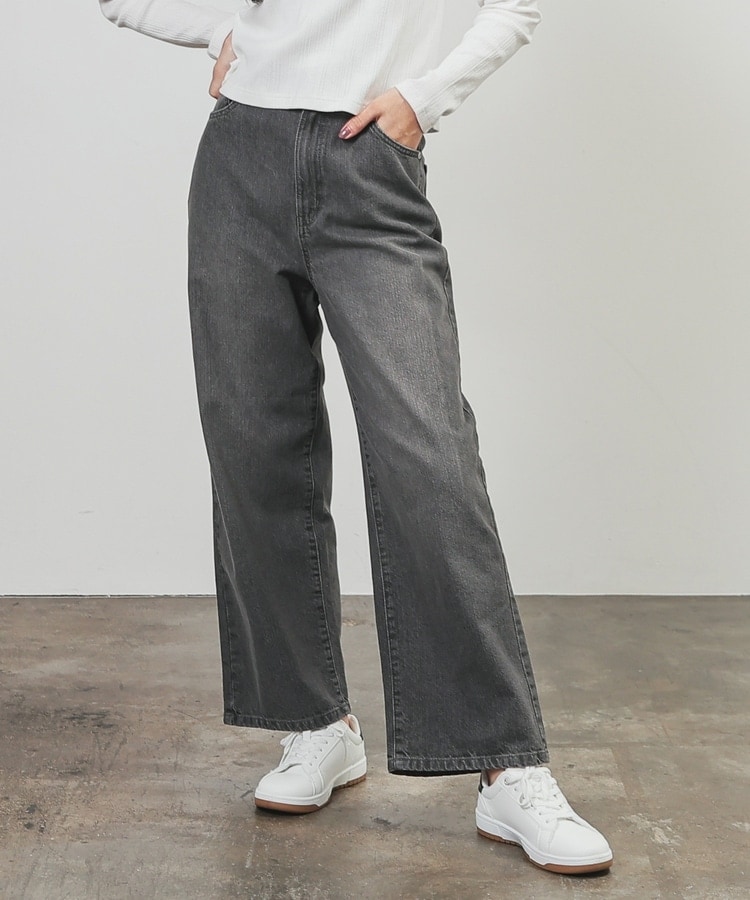 ハイウエスト&すっきり見えるストレートシルエットで脚長効果抜群。