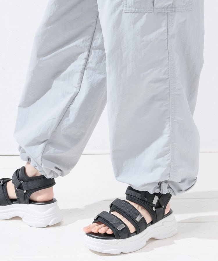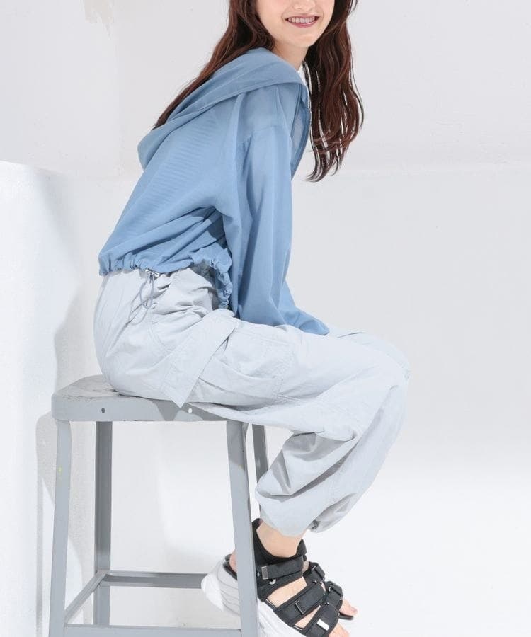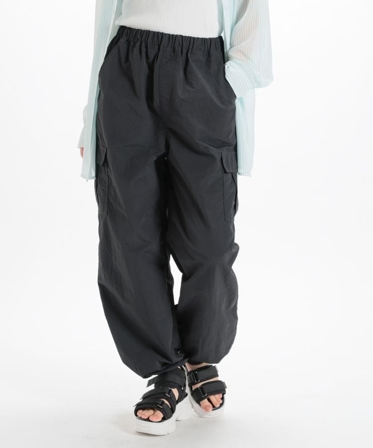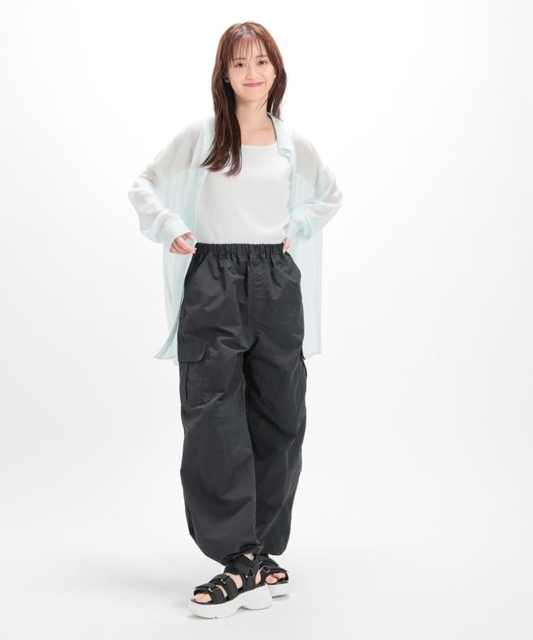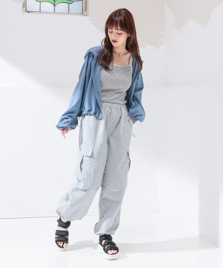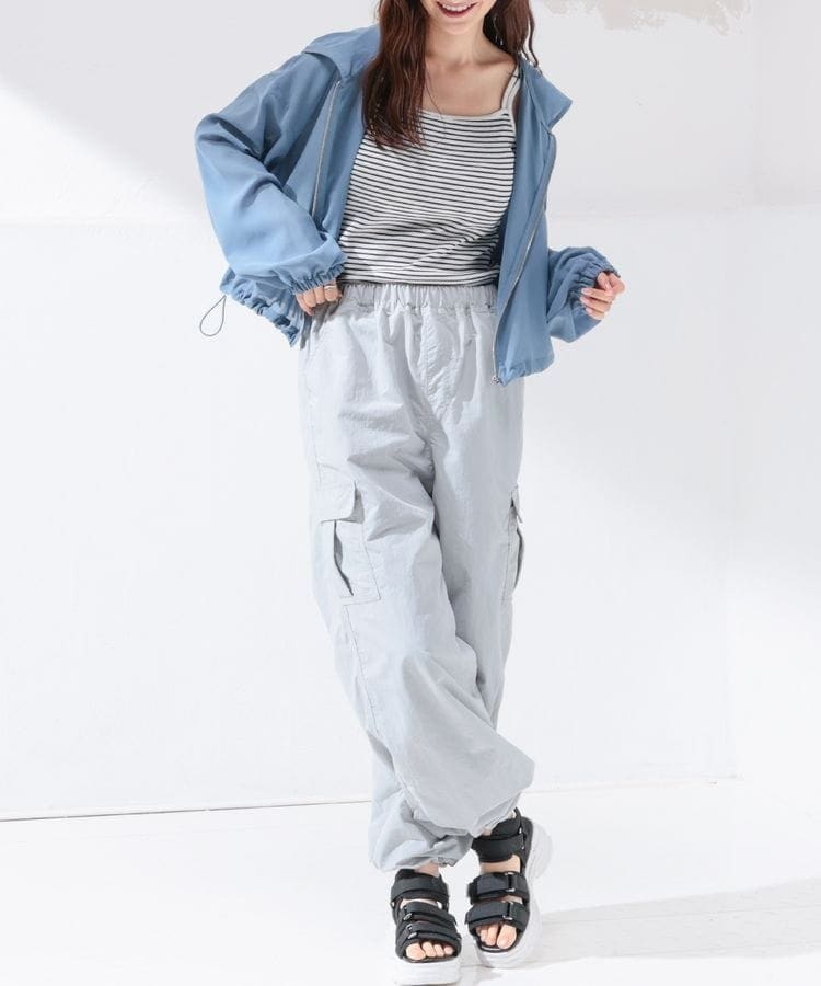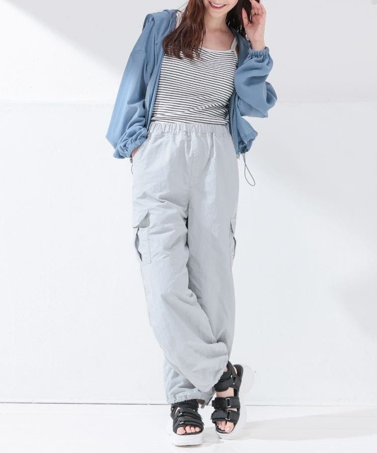 裾のドロストを緩めてストレートパンツとしても着用可能。