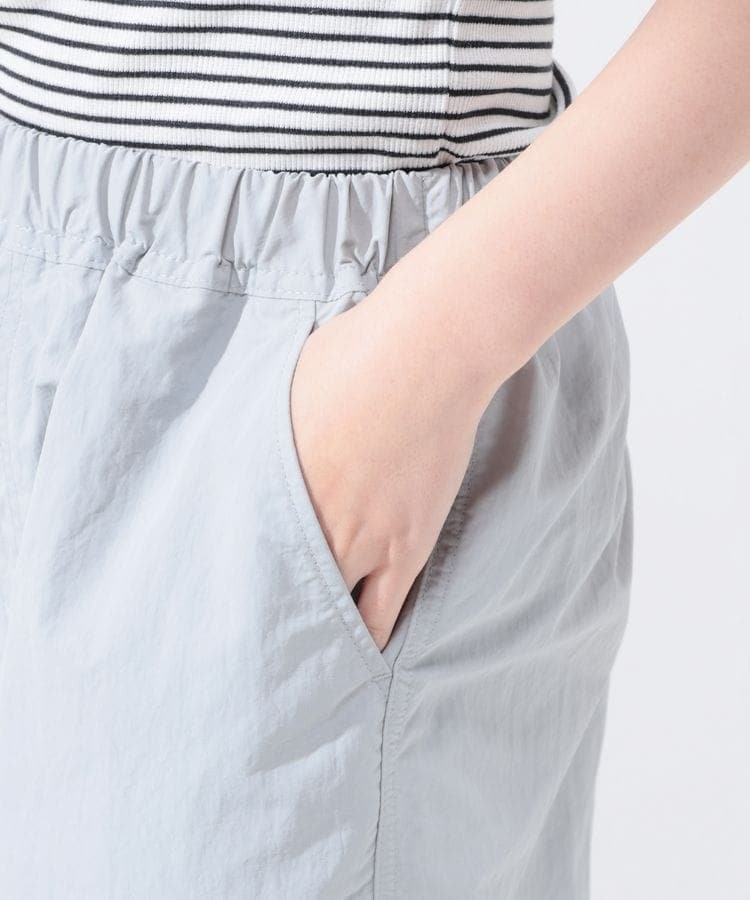 ハイウエスト&裾絞りのメリハリシルエットながら、ゆったり幅とウエストゴムでリラクシーなはき心地。
