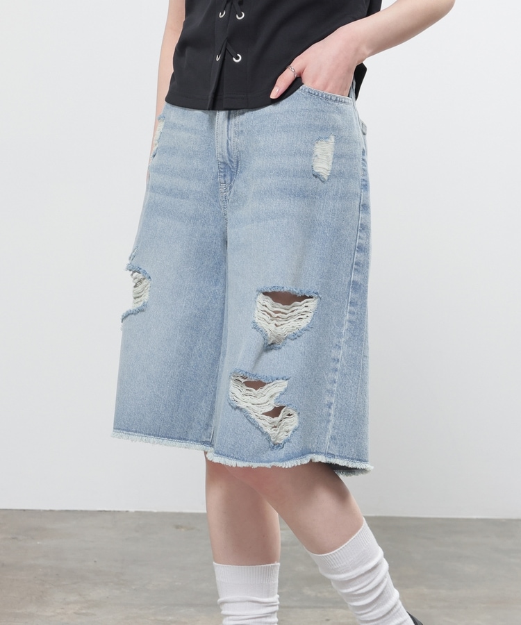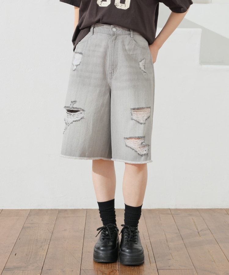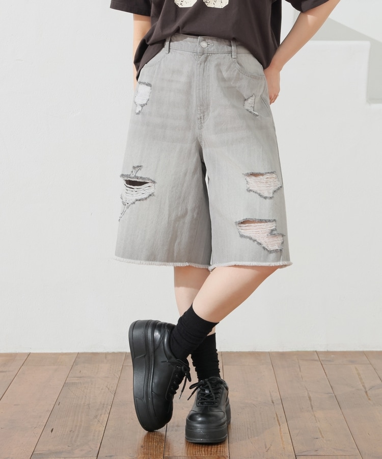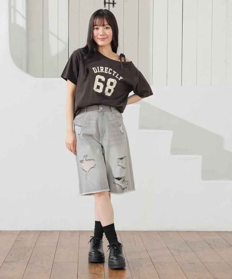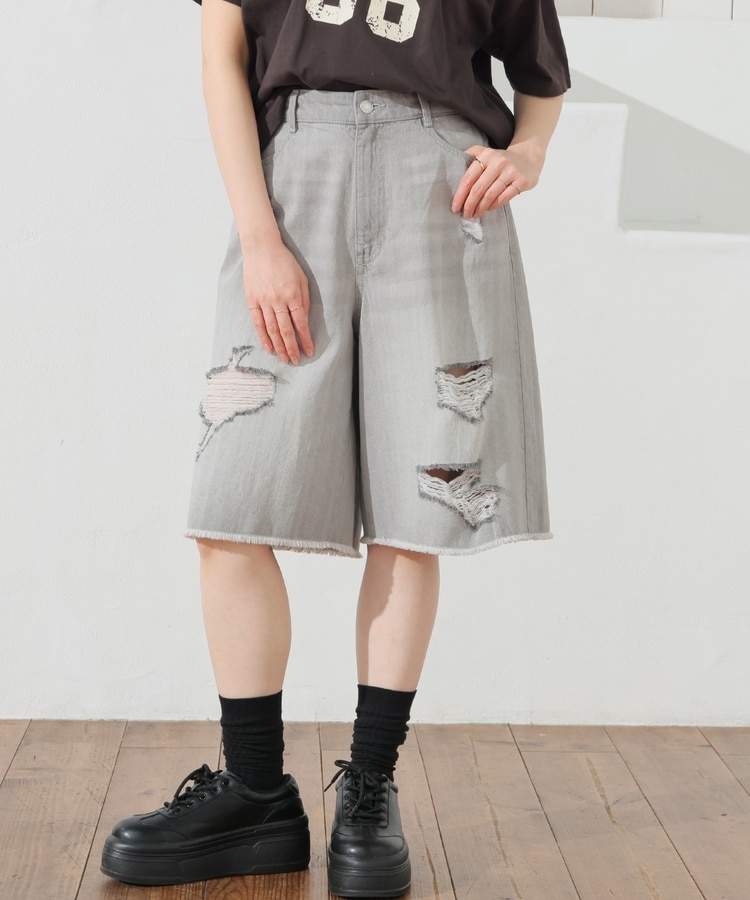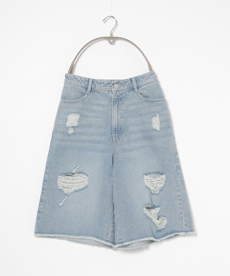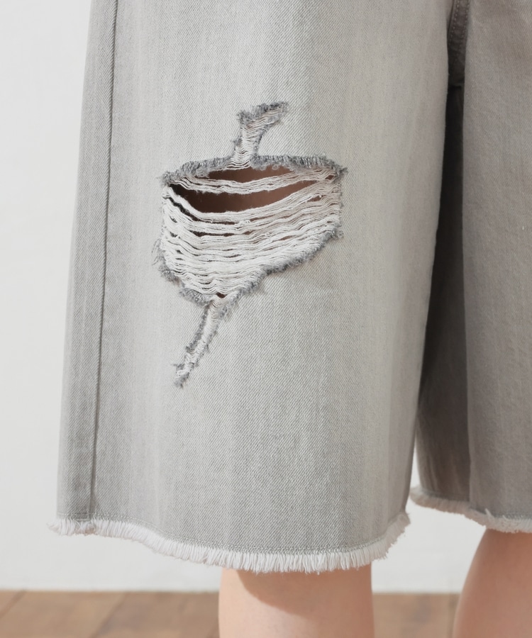 膝上の絶妙な丈感と裾に向かってやや広がるワイドめなシルエットで、細見え効果も期待できる今年らしいデザイン。