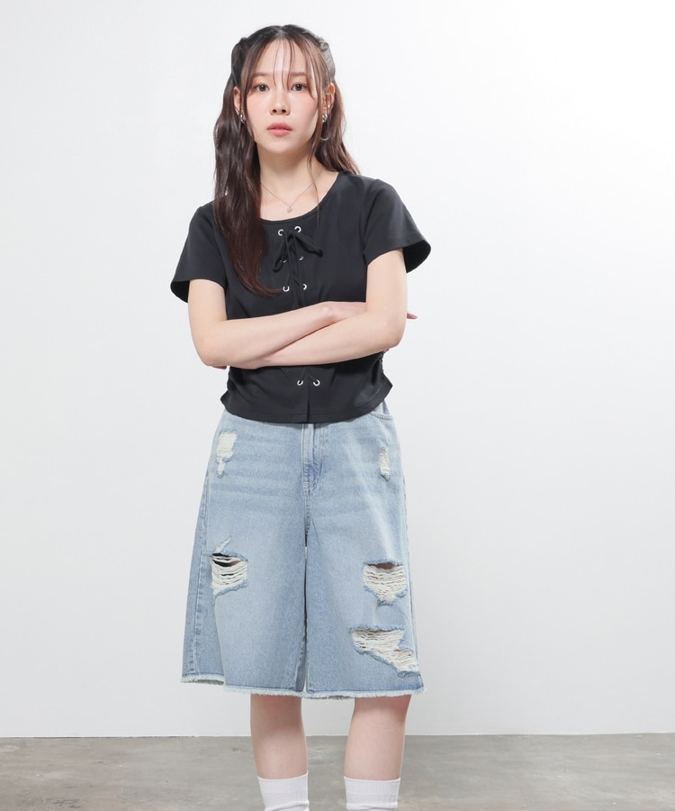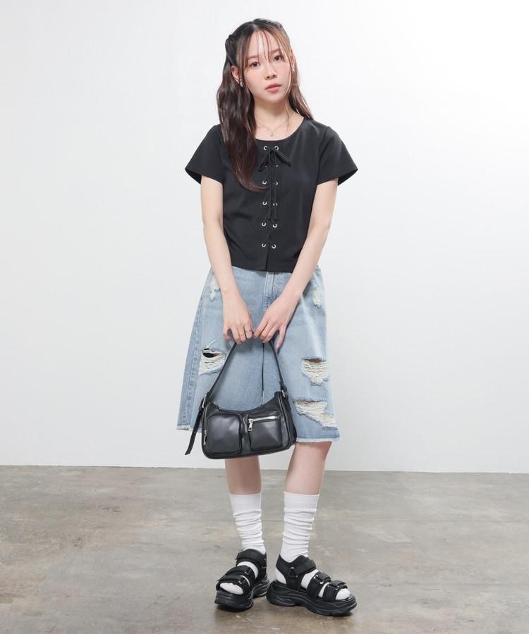 コンパクトトップスと合わせた韓国ストリート風な着こなしが今っぽくておすすめ!