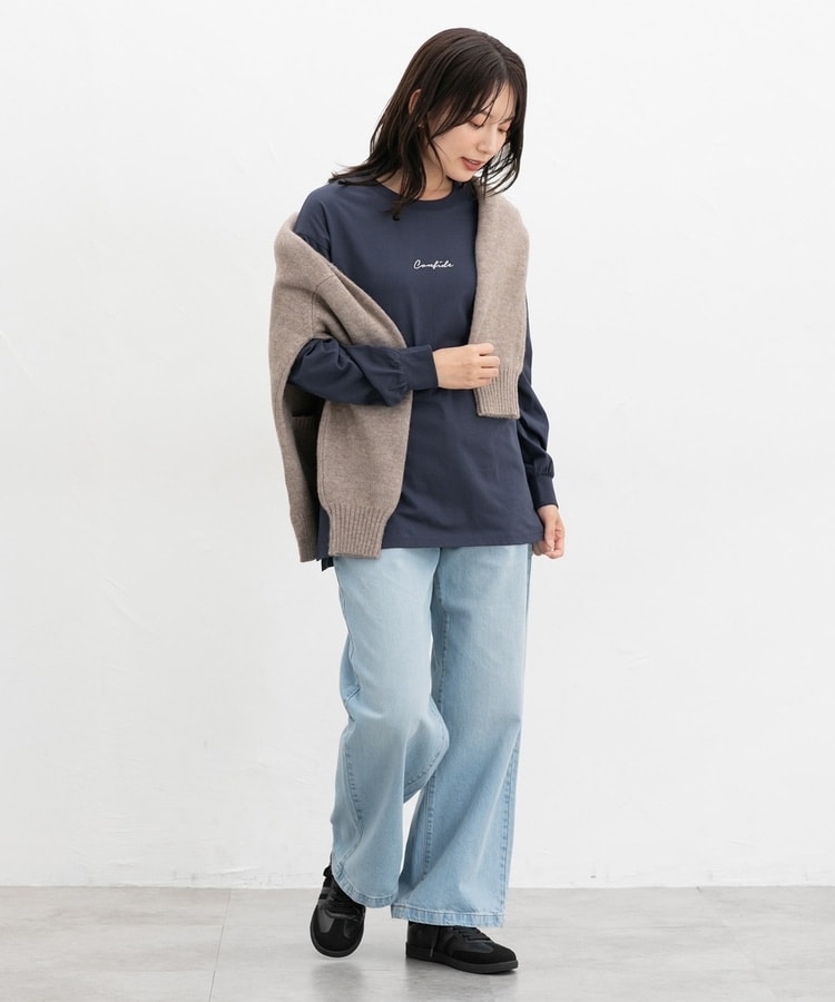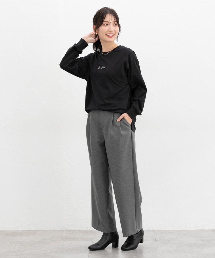 スキニーパンツやイージーストレートパンツなど、カジュアルなボトムスと相性抜群。