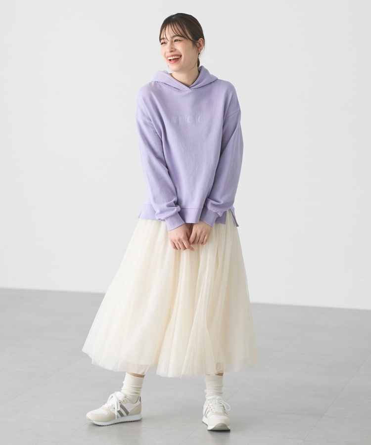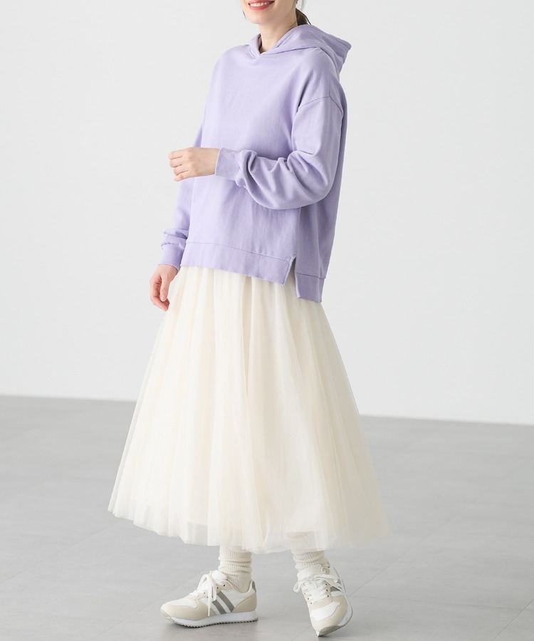 前後差のあるストンと落ちるシルエットで、パンツにもスカートにも好相性。