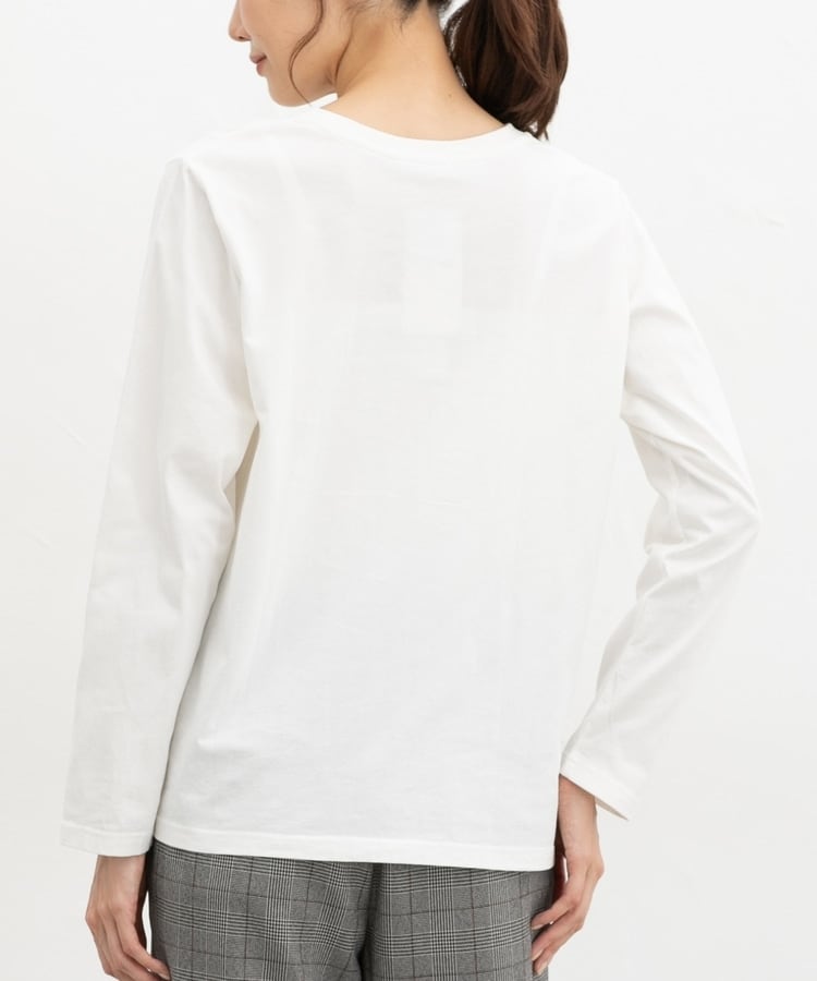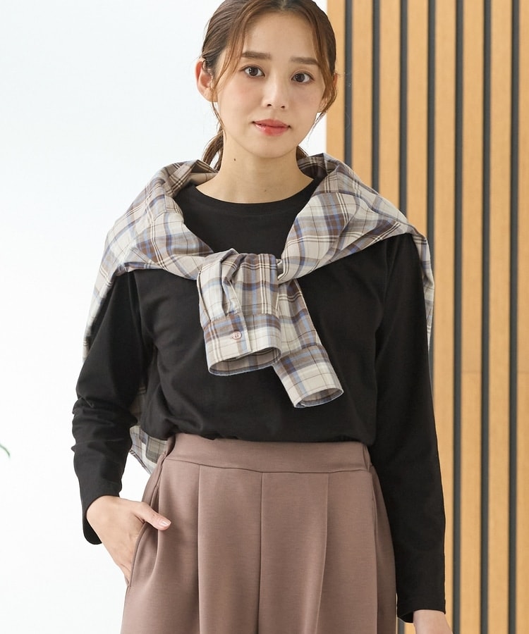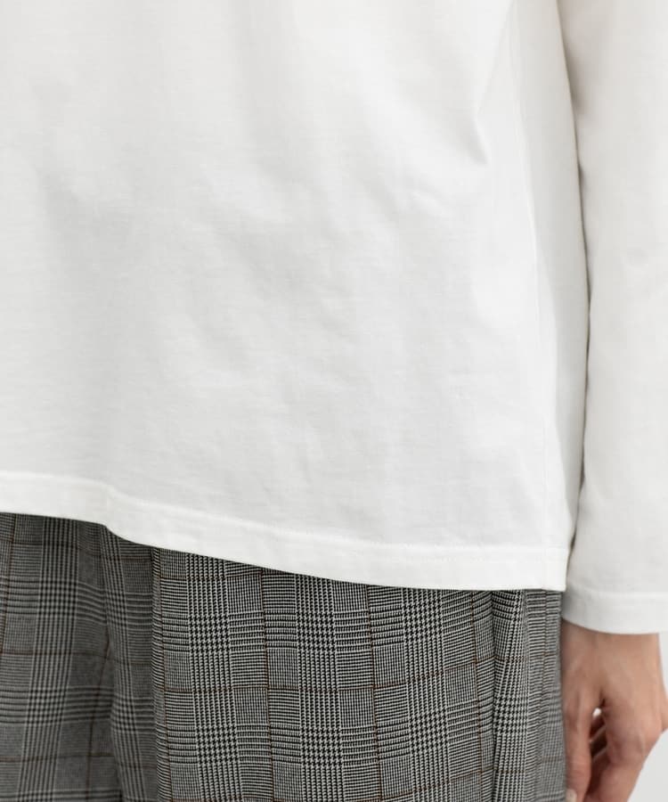 ベーシックなクルーネックで、ゆったりめの幅と腰回りが隠れる丈感。